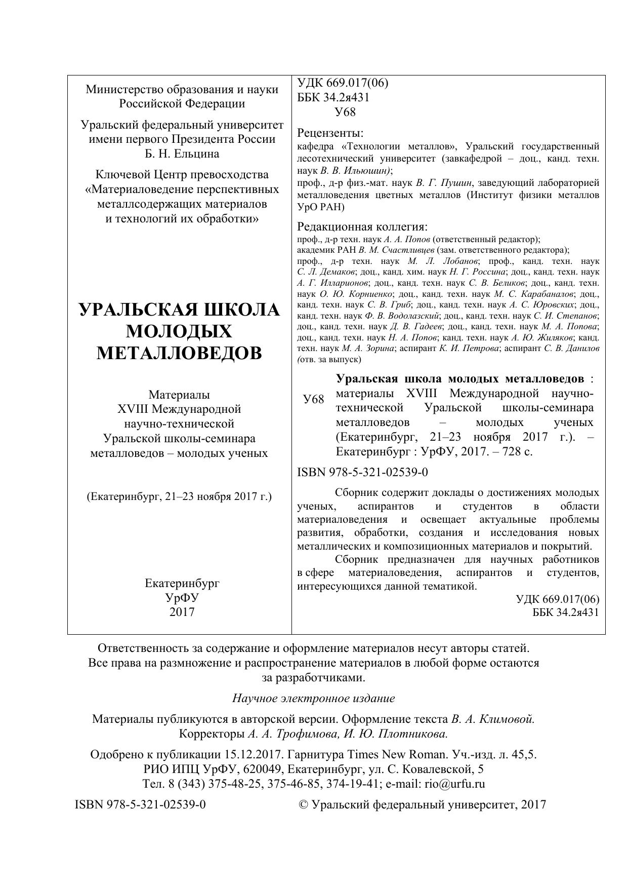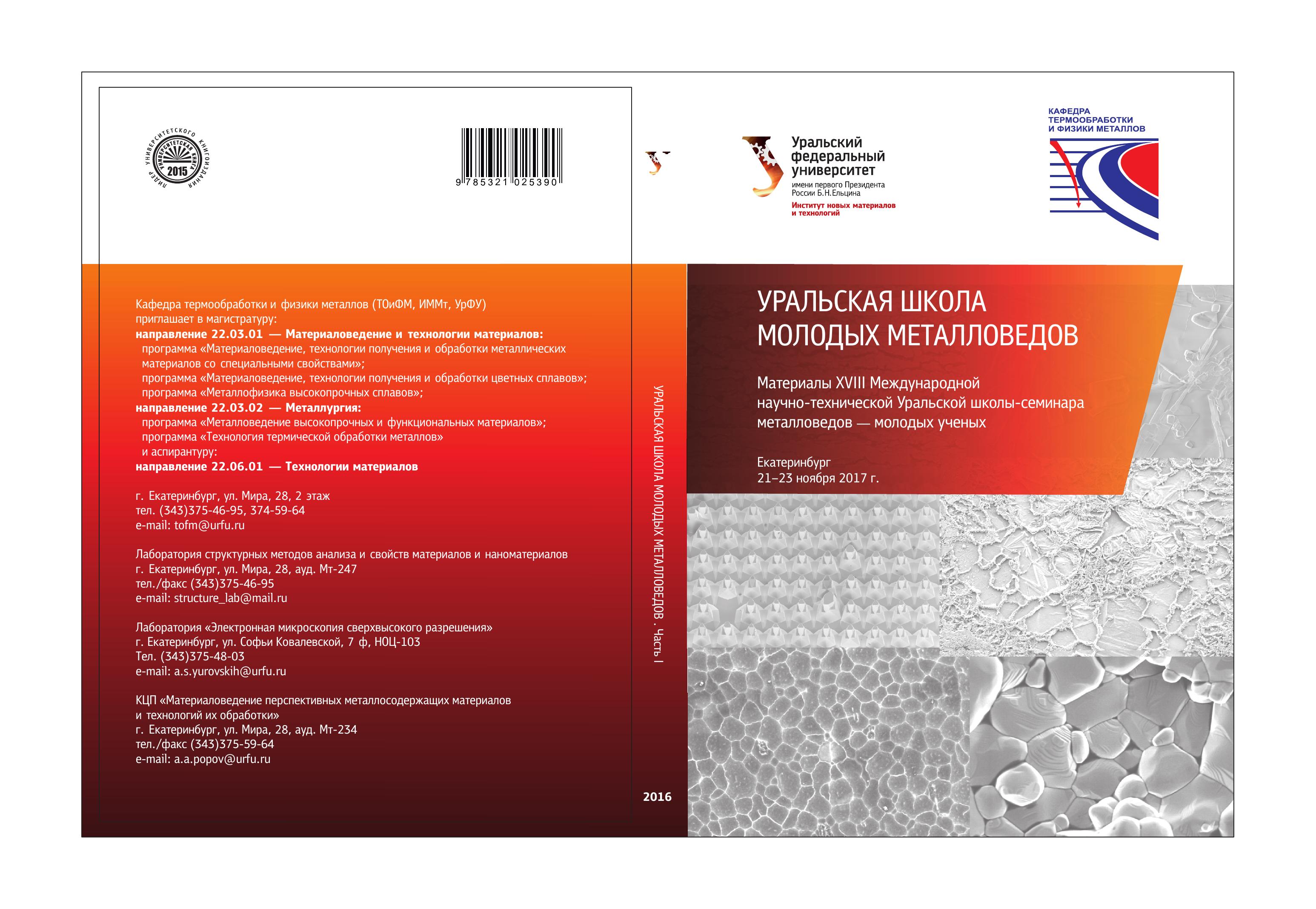 Уральская школа молодых металловедов: материалы XVIII Международной научно- технической Уральской школы-семинара металловедов – молодых ученых (Екатеринбург, 21–23 ноября 2017 г.)