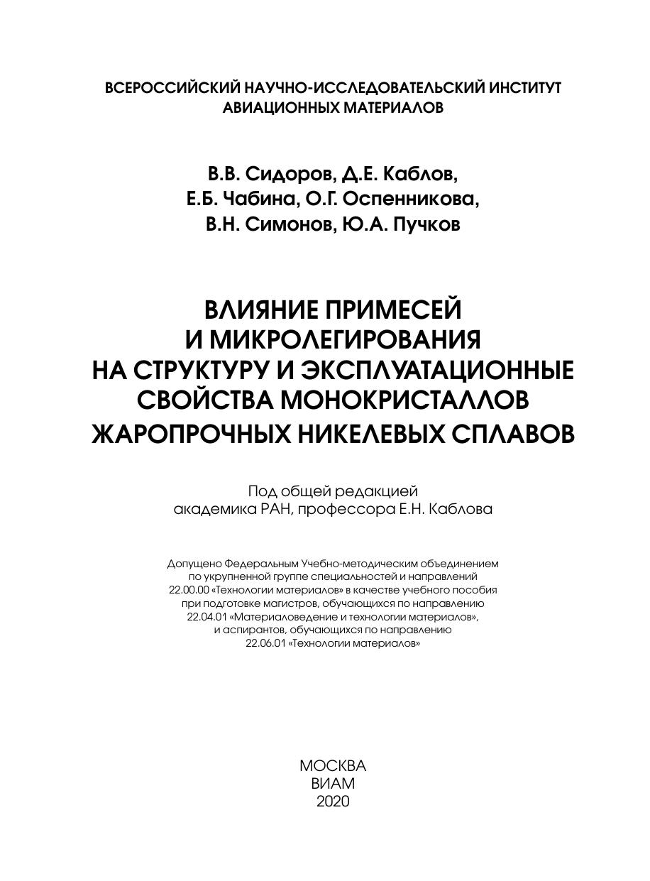 Авторы: Сидоров В. В., Каблов Д. Е., Чабина Е. Б., Оспенникова О. Г., Симонов В. Н., Пучков Ю. А.