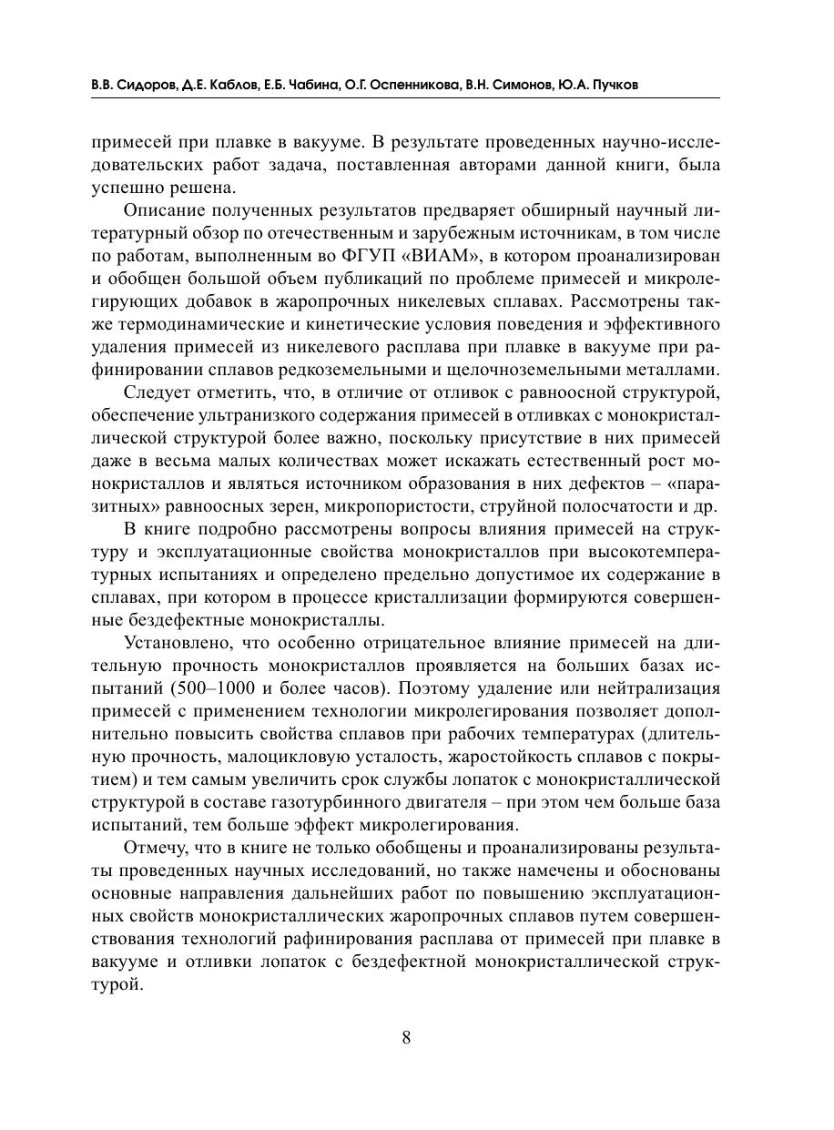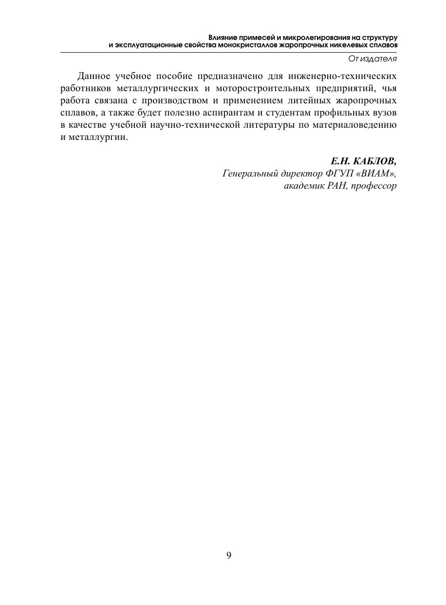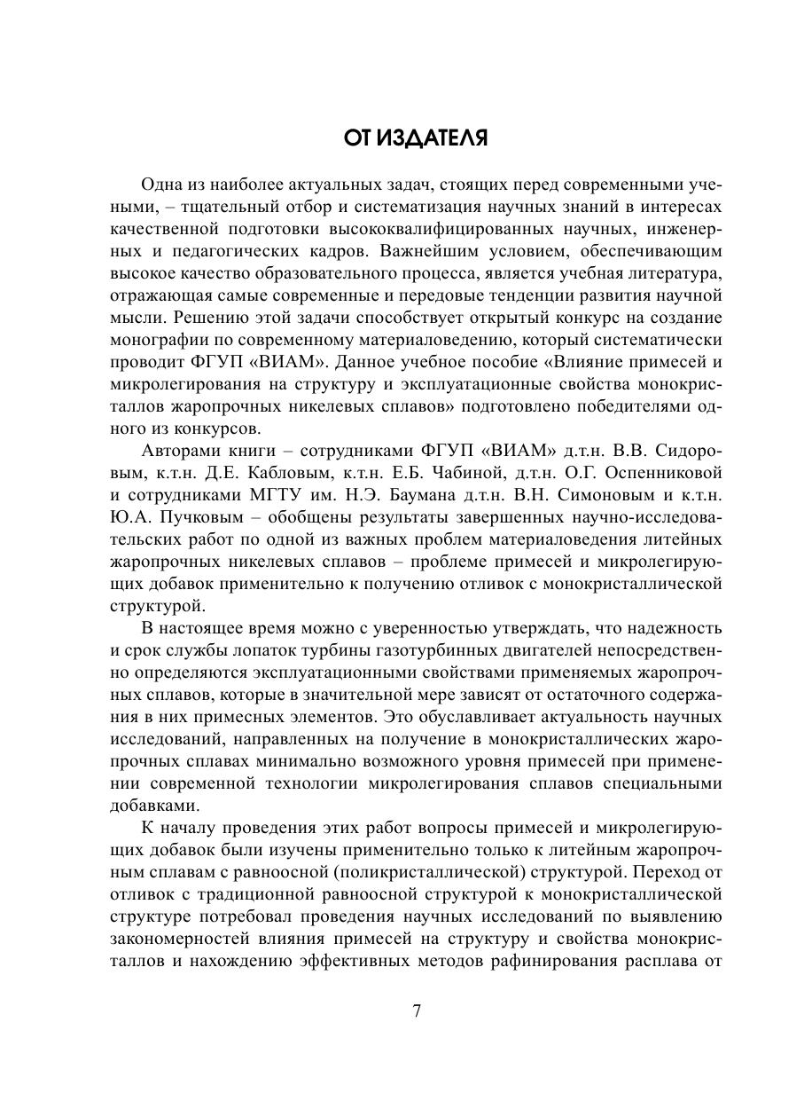 В учебном пособии обобщены результаты научно-исследовательских работ, проведенных совместно сотрудниками ВИАМ и МГТУ им. Н.Э. Баумана. Особое внимание уделено влиянию примесных элементов и специальных микролегирующих добавок щелочноземельных и редкоземельных элементов на технологические и эксплуатационные свойства монокристаллических жаропрочных никелевых сплавов.
