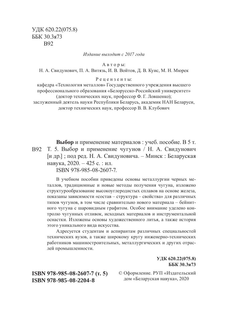 Выбор и применение материалов: В 5 т. Т. 5. Выбор и применение чугунов