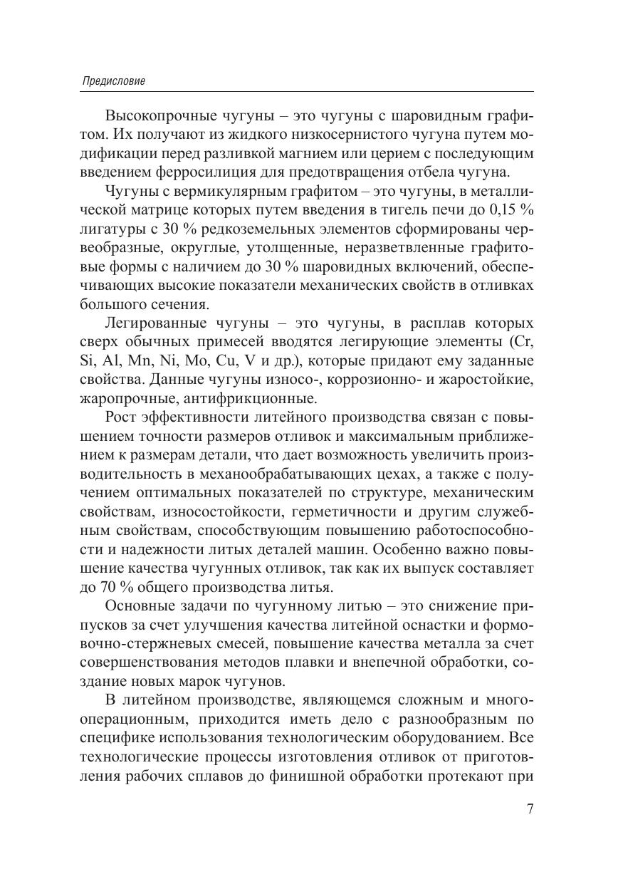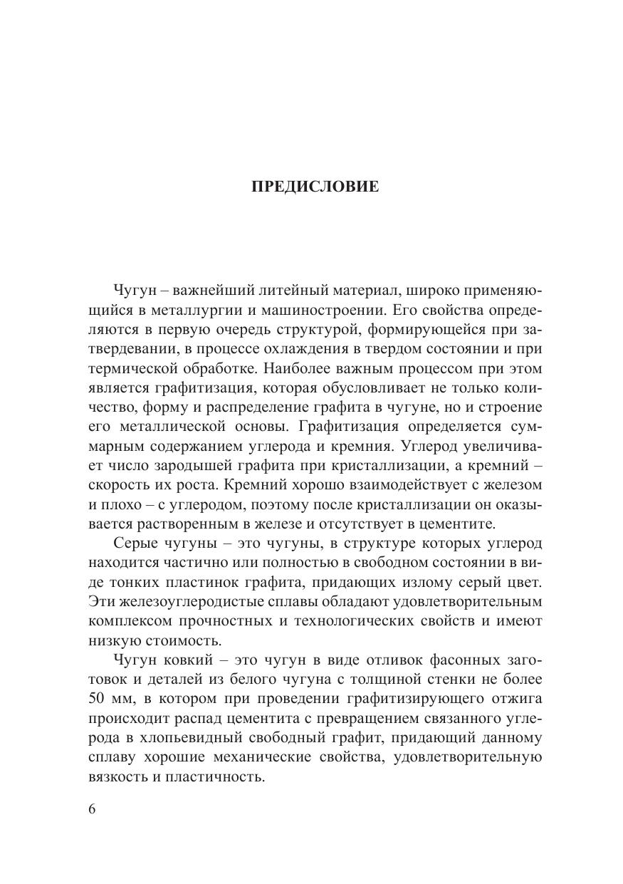В учебном пособии приведены основы металлургии черных металлов, традиционные и новые методы получения чугуна, изложено структурообразование высокоуглеродистых сплавов на основе железа, показаны зависимости «состав – структура – свойства» для различных типов чугунов, в том числе сравнительно нового материала – бейнитного чугуна с шаровидным графитом. Особое внимание уделено контролю чугунных отливок, исходных материалов и инструментальной оснастки. Изложены основы художественного литья, а также история этого уникального вида искусства.