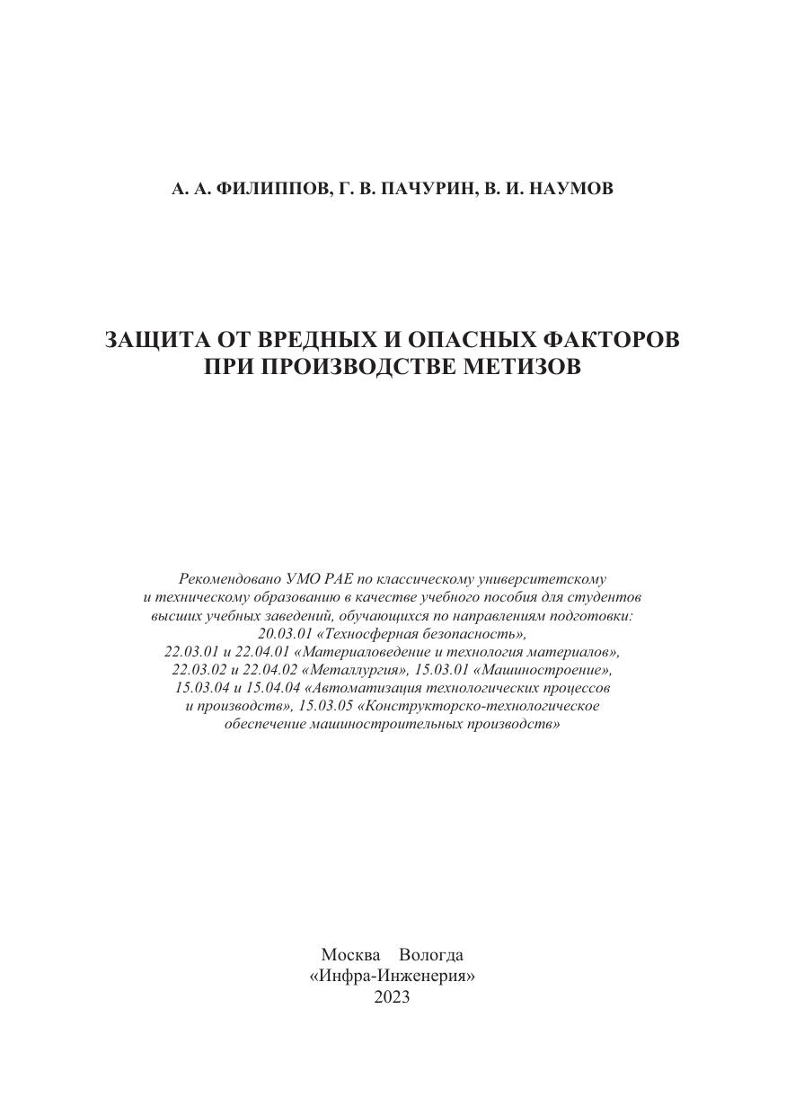 Авторы: Филиппов А. А., Пачурин Г. В., Наумов В. И.