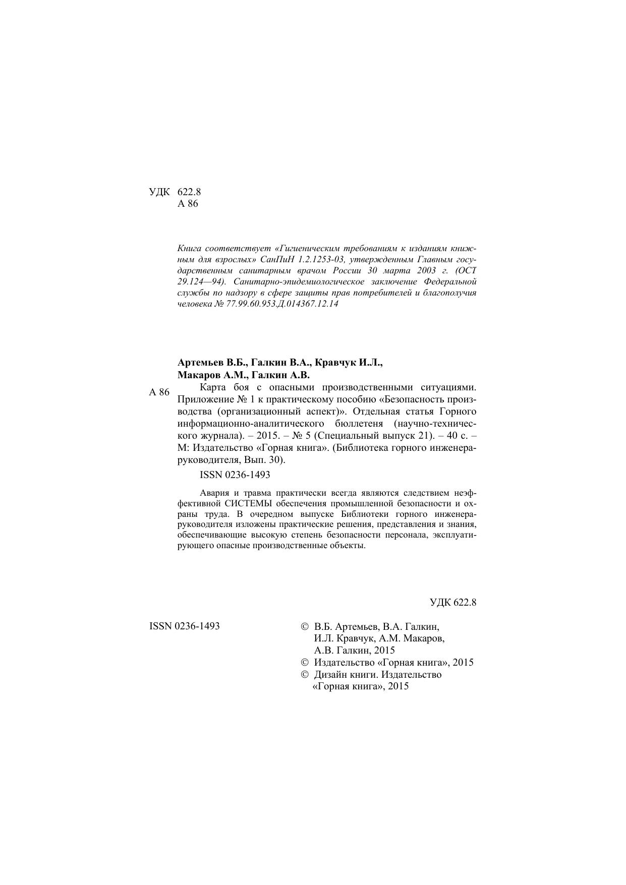 Карта боя с опасными производственными ситуациями. Приложение № 1 к практическому пособию «Безопасность производства (организационный аспект)». Отдельная статья Горного информационно-аналитического бюллетеня (научно-технического журнала)