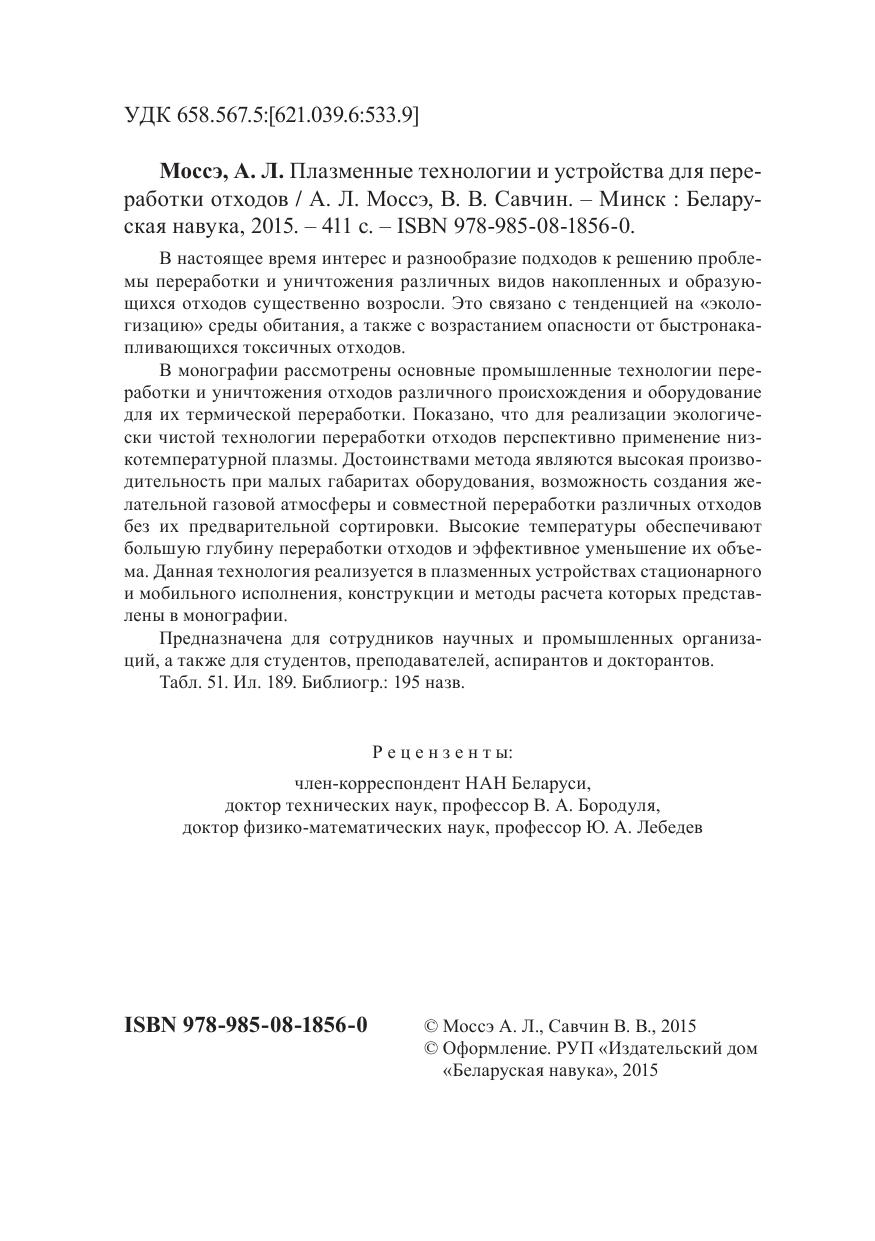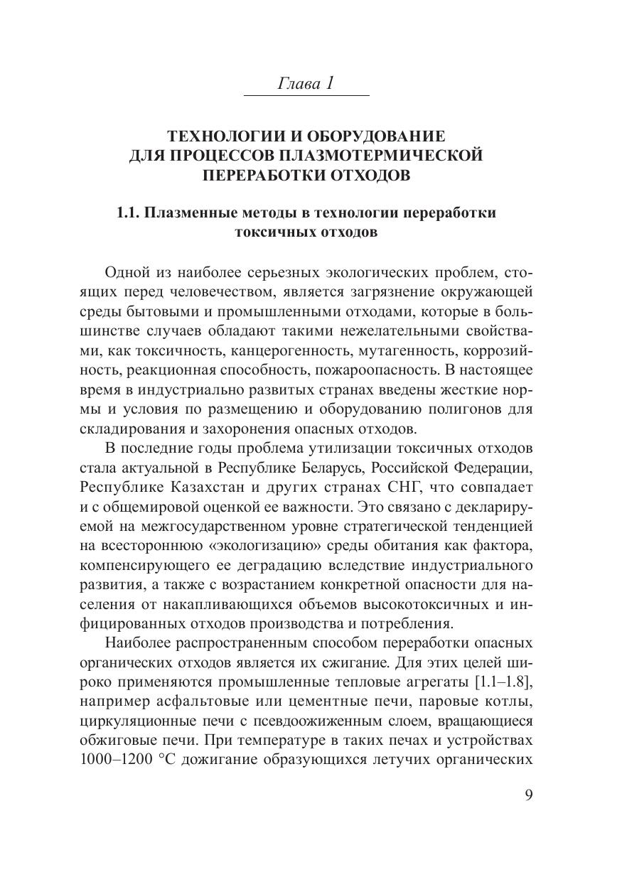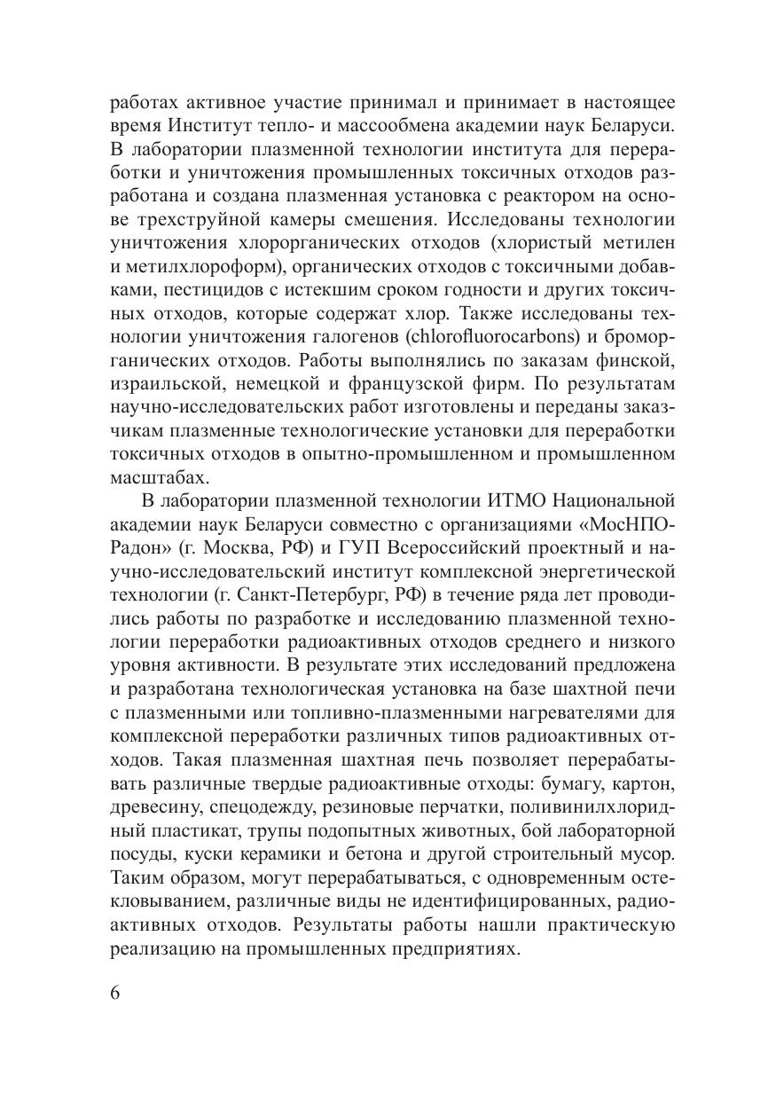 В настоящее время интерес и разнообразие подходов к решению проблемы переработки и уничтожения различных видов накопленных и образующихся отходов существенно возросли. Это связано с тенденцией на «экологизацию» среды обитания, а также с возрастанием опасности от быстронакапливающихся токсичных отходов. В монографии рассмотрены основные промышленные технологии переработки и уничтожения отходов различного происхождения и оборудование для их термической переработки. Показано, что для реализации экологически чистой технологии переработки отходов перспективно применение низкотемпературной плазмы. Достоинствами метода являются высокая производительность при малых габаритах оборудования, возможность создания желательной газовой атмосферы и совместной переработки различных отходов без их предварительной сортировки. Высокие температуры обеспечивают большую глубину переработки отходов и эффективное уменьшение их объема. Данная технология реализуется в плазменных устройствах стационарного и мобильного исполнения, конструкции и методы расчета которых представлены в монографии. Предназначена для сотрудников научных и промышленных организаций, а также для студентов, преподавателей, аспирантов и докторантов.