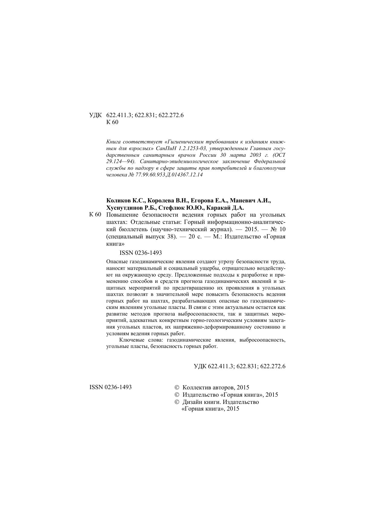 Повышение безопасности ведения горных работ на угольных шахтах: Отдельные статьи: Горный информационно-аналитический бюллетень (научно-технический журнал)