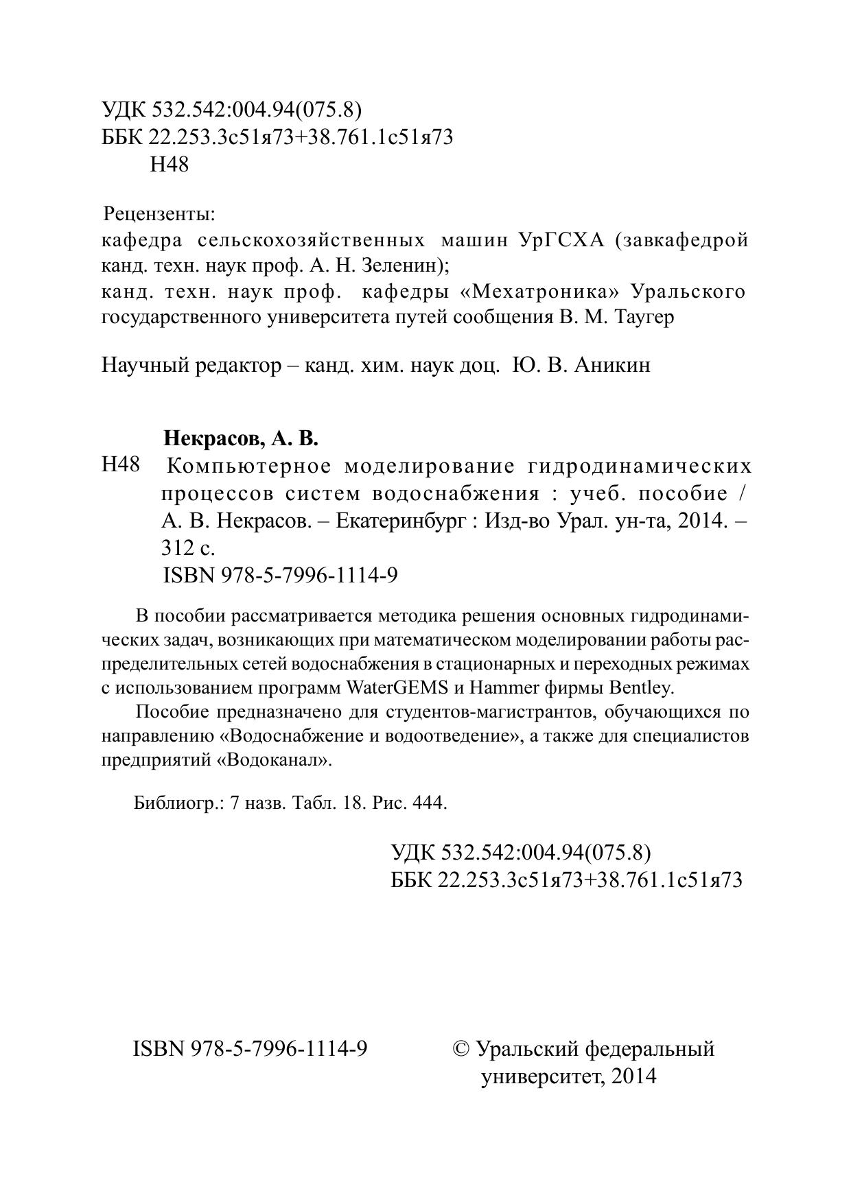 Компьютерное моделирование гидродинамических процессов систем водоснабжения: учеб. пособие Некрасов А.В.