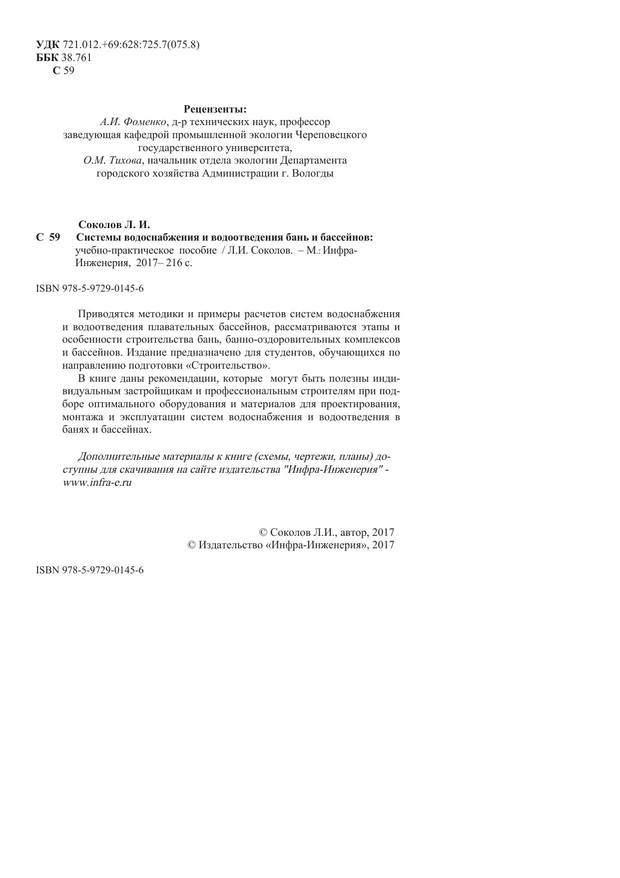 Системы водоснабжения и водоотведения бань и бассейнов. Учебно-практическое пособие