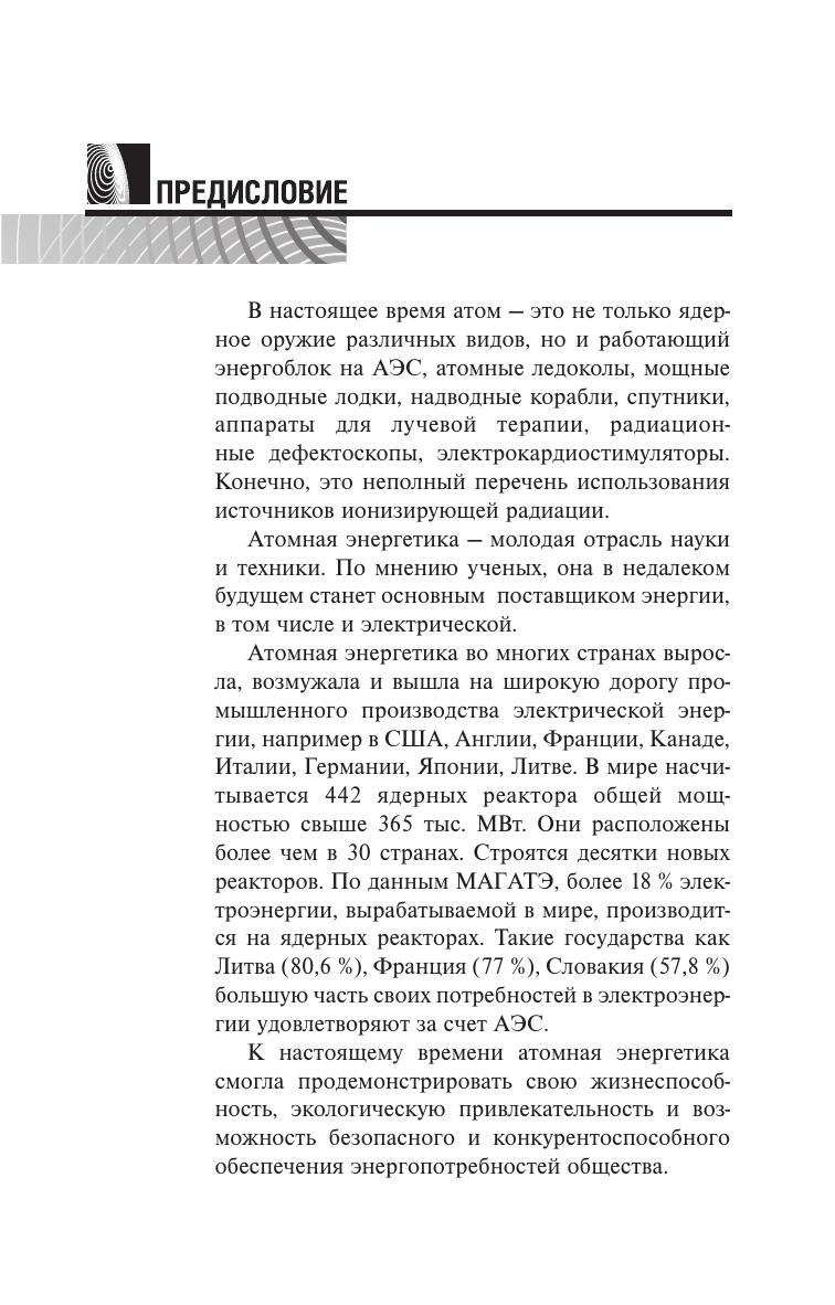 Представлены сведения об элементах ядерной физики, естественных источниках радиации, действии ионизирующих излучений на организм человека, гигиенических аспектах радиационной безопасности, ядерном топливе, экологических проблемах энергетики, радиационной безопасности предприятий ядерно-топливного цикла. Для студентов высших учебных заведений, учащихся средних специальных и общеобразовательных учебных заведений, широкого круга читателей.