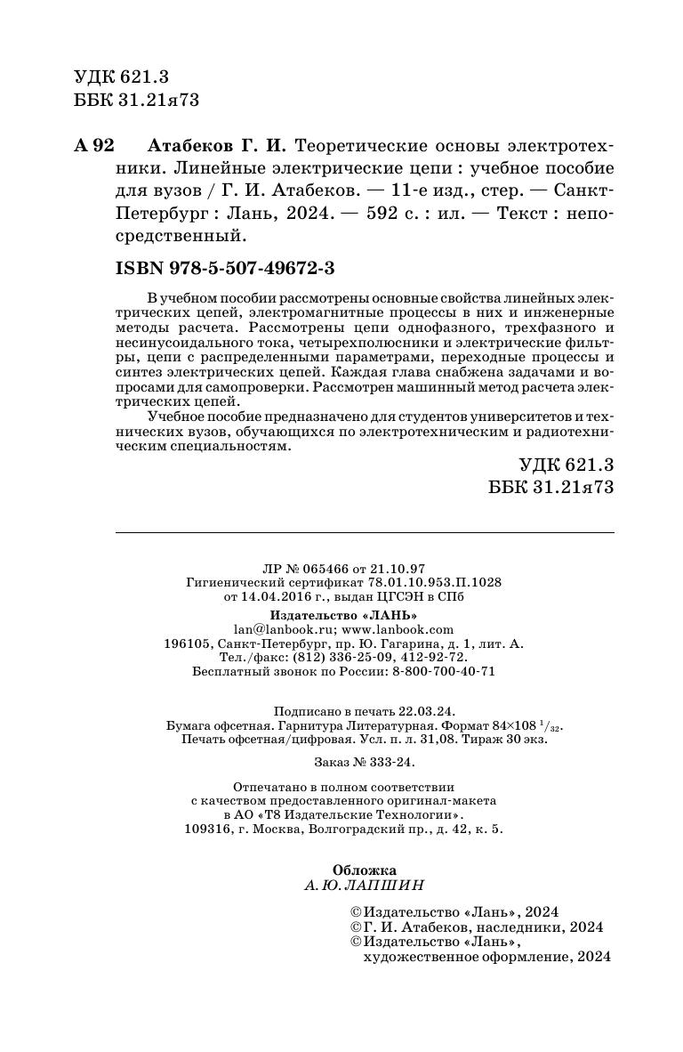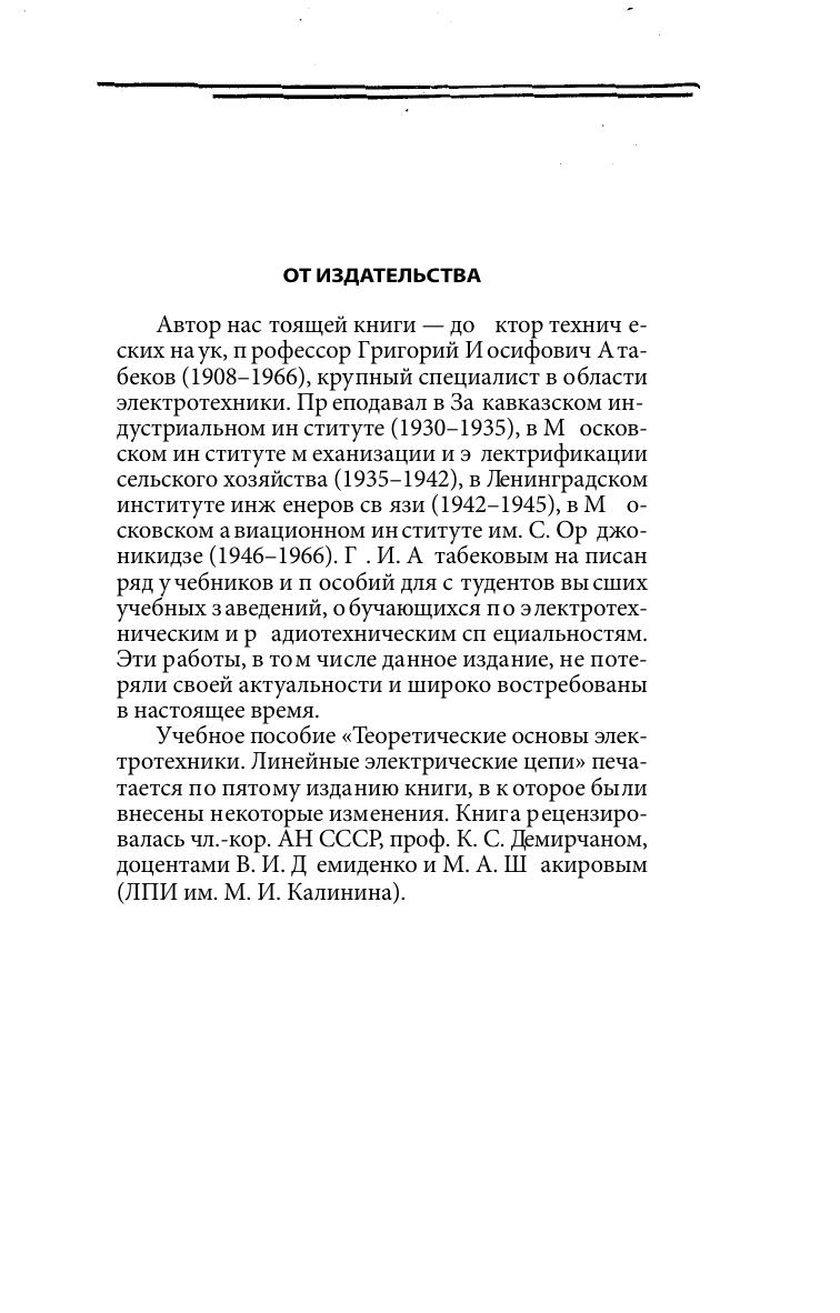 В учебном пособии рассмотрены основные свойства линейных электрических цепей, электромагнитные процессы в них и инженерные методы расчета. Рассмотрены цепи однофазного, трехфазного и несинусоидального тока, четырехполюсники и электрические фильтры, цепи с распределенными параметрами, переходные процессы и синтез электрических цепей. Каждая глава снабжена задачами и вопросами для самопроверки. Рассмотрен машинный метод расчета электрических цепей.Учебное пособие предназначено для студентов университетов и технических вузов, обучающихся по электротехническим и радиотехническим специальностям.