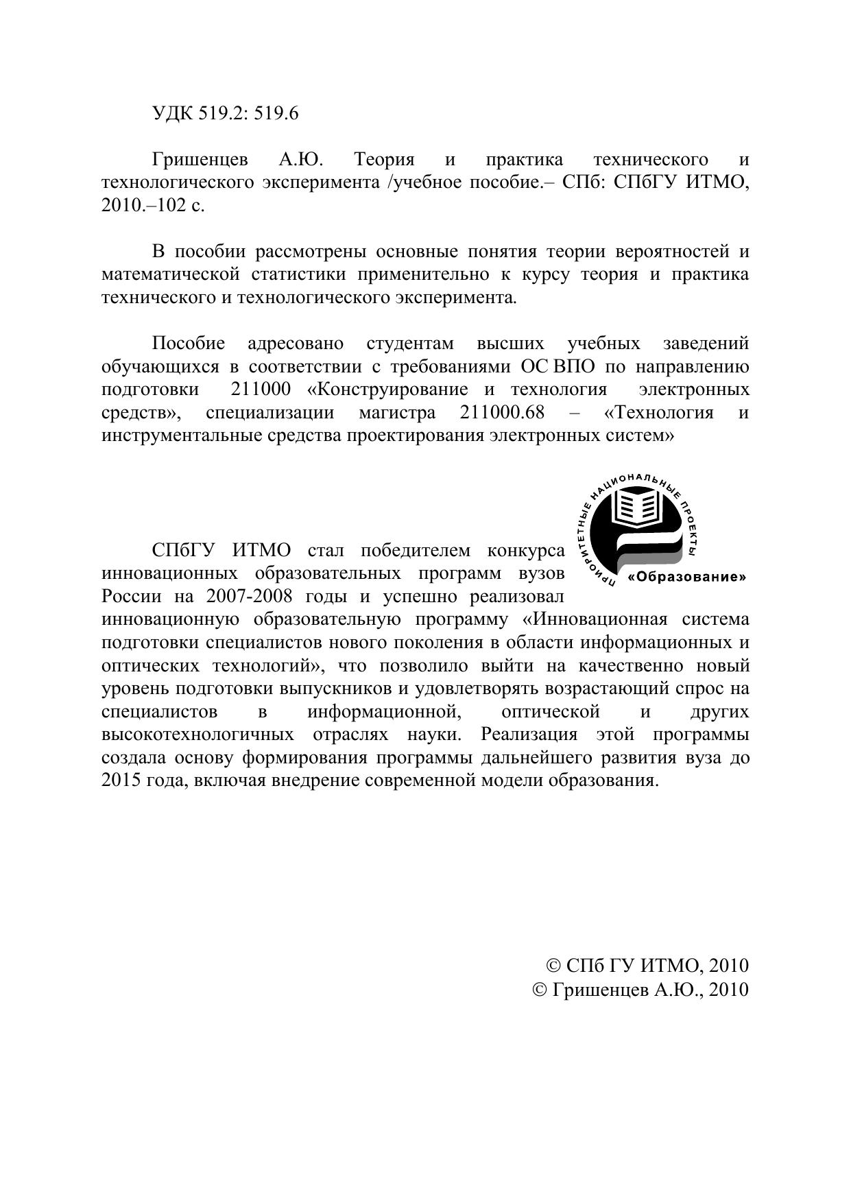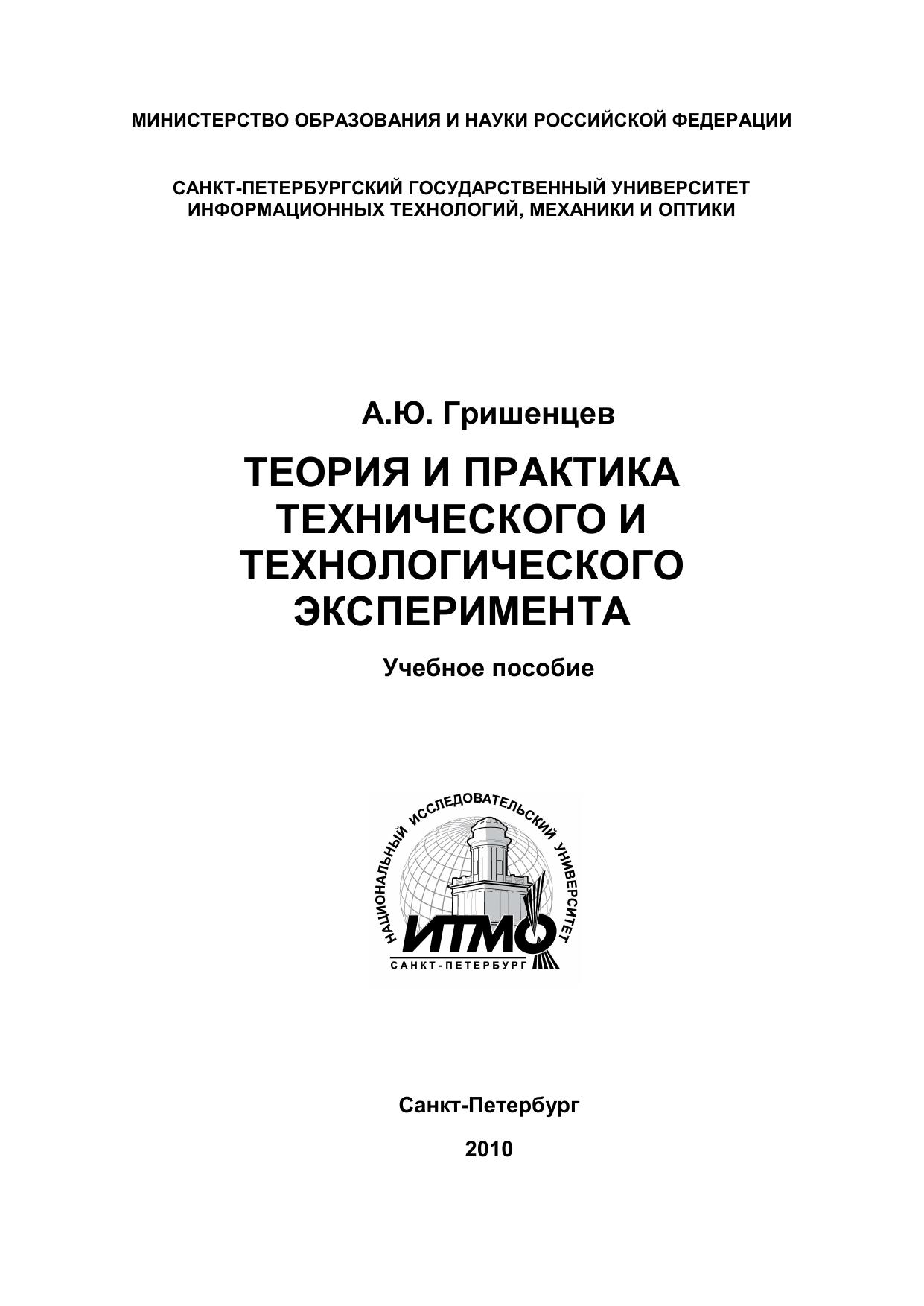 Теория и практика технического и технологического эксперимента