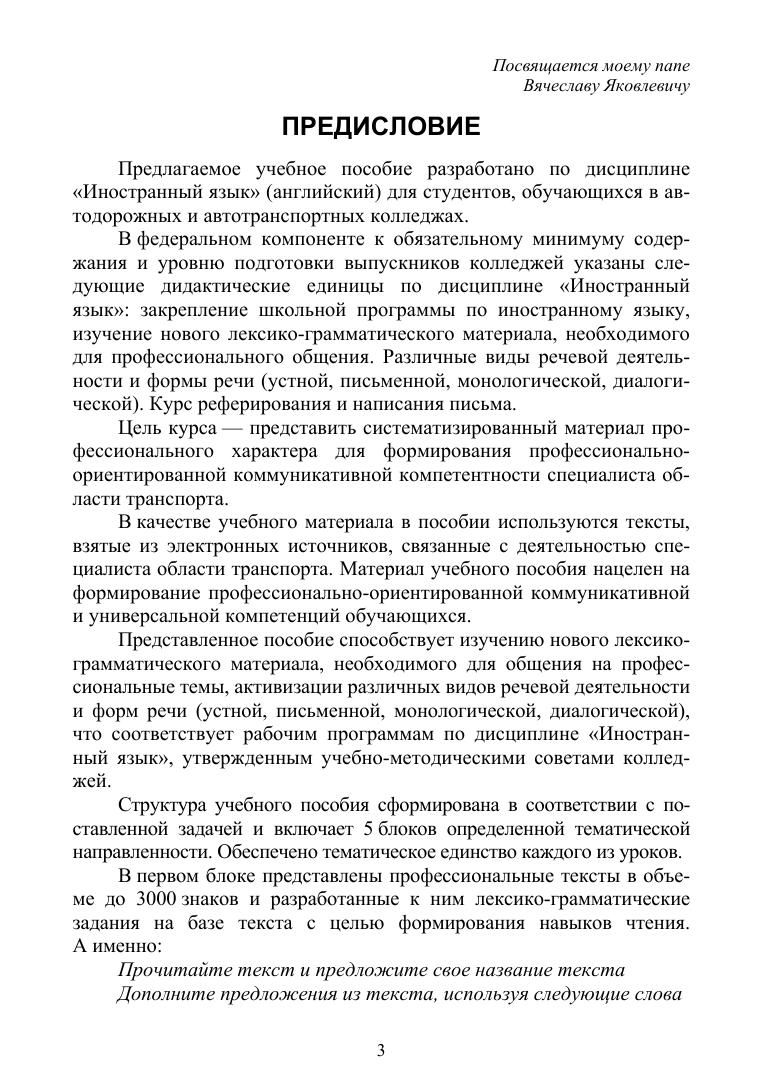 Пособие предназначено для формирования профессионально-ориентированной коммуникативной компетенции студентов автодорожных и автотранспортных колледжей.