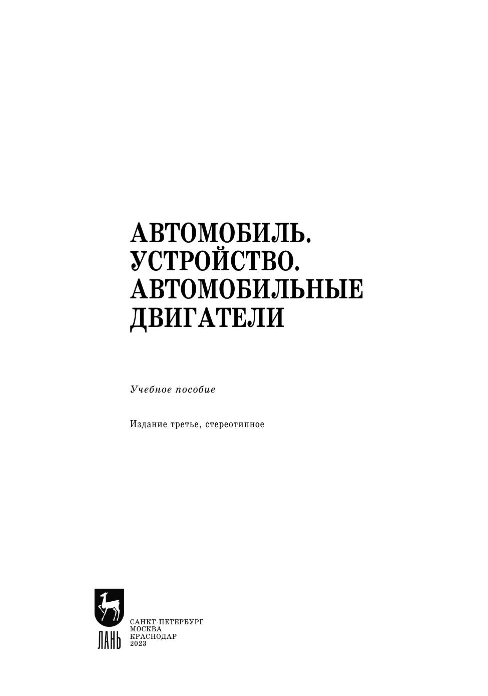 В учебном пособии рассмотрено назначение, классификация, устройство и работа механизмов, агрегатов, систем и приборов автомобилей, приводится общее устройство и классификация автомобилей, назначение, устройство и работа механизмов и систем автомобильных двигателей. Каждый раздел, помимо теоретических сведений, содержит контрольные вопросы, также пособие содержит тестовые задания для проверки знаний. Учебное пособие предназначено для студентов высших учебных заведений направлений подготовки бакалавров «Технология транспортных процессов», «Наземные транспортно-технологические комплексы», «Эксплуатация транспортно-технологических машин и комплексов», «Техносферная безопасность». Кроме того, пособие может быть полезно для магистров соответствующих специальностей и направлений, а также специалистов, осуществляющих профессиональную деятельность в области автомобилестроения и эксплуатации автомобилей.