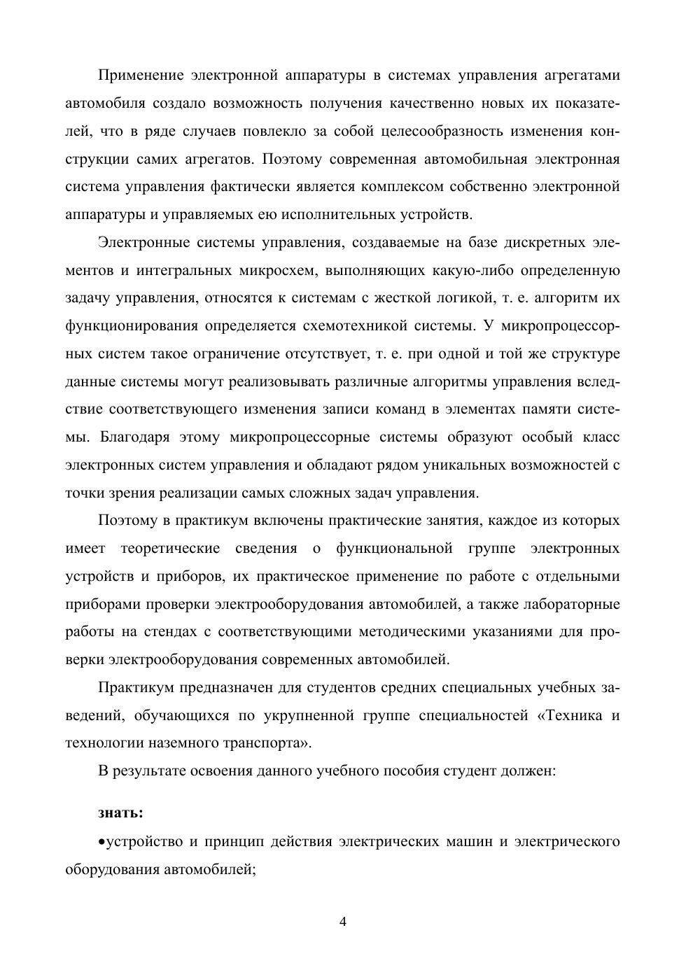 В практикум включены практические занятия, каждое из которых имеет теоретические сведения о функциональной группе электронных устройств и приборов, их практическое применение по работе с отдельными приборами проверки электрооборудования автомобилей, а также лабораторные работы на стендах с соответствующими методическими указаниями для проверки электрооборудования современных автомобилей. Пособие соответствует современным требованиям Федерального государственного образовательного стандарта среднего профессионального образования и профессиональным квалификационным требованиям. Практикум предназначен для студентов средних специальных учебных заведений, обучающихся по направлениям укрупненной группы специальностей «Техника и технологии наземного транспорта».