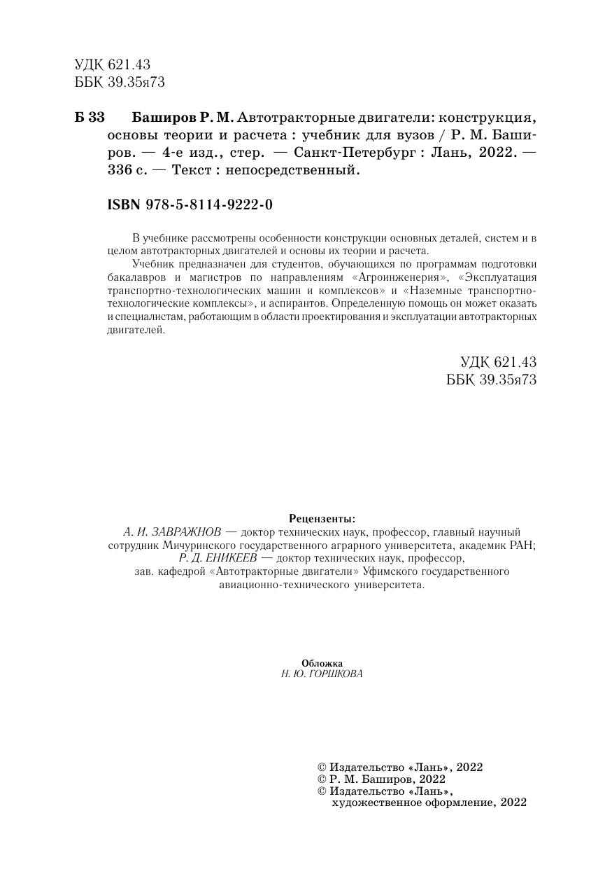 Учебник предназначен для студентов, обучающихся по программам подготовки бакалавров и магистров по направлениям «Агроинженерия», «Эксплуатация транспортно-технологических машин и комплексов» и «Наземные транспортно-технологические комплексы», и аспирантов. Определенную помощь он может оказать и специалистам, работающим в области проектирования и эксплуатации автотракторных двигателей.