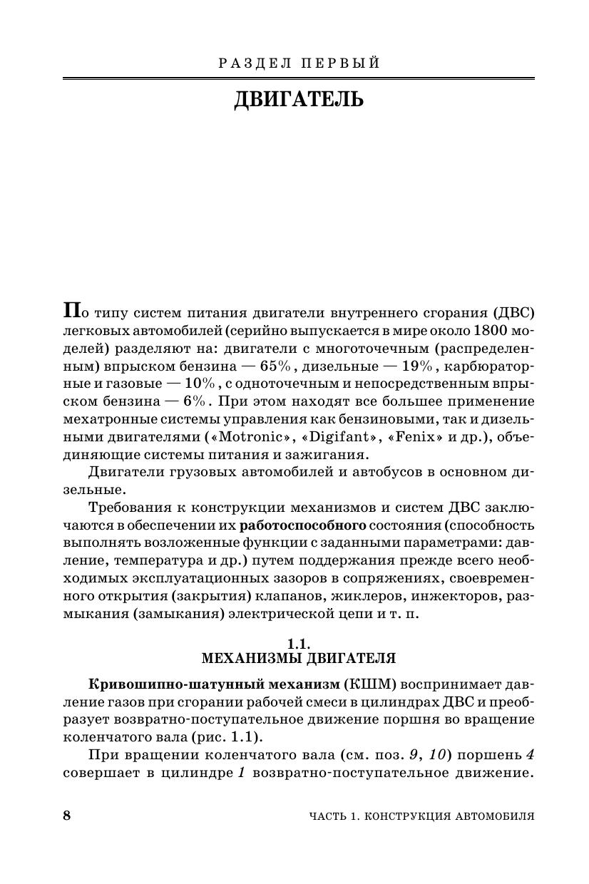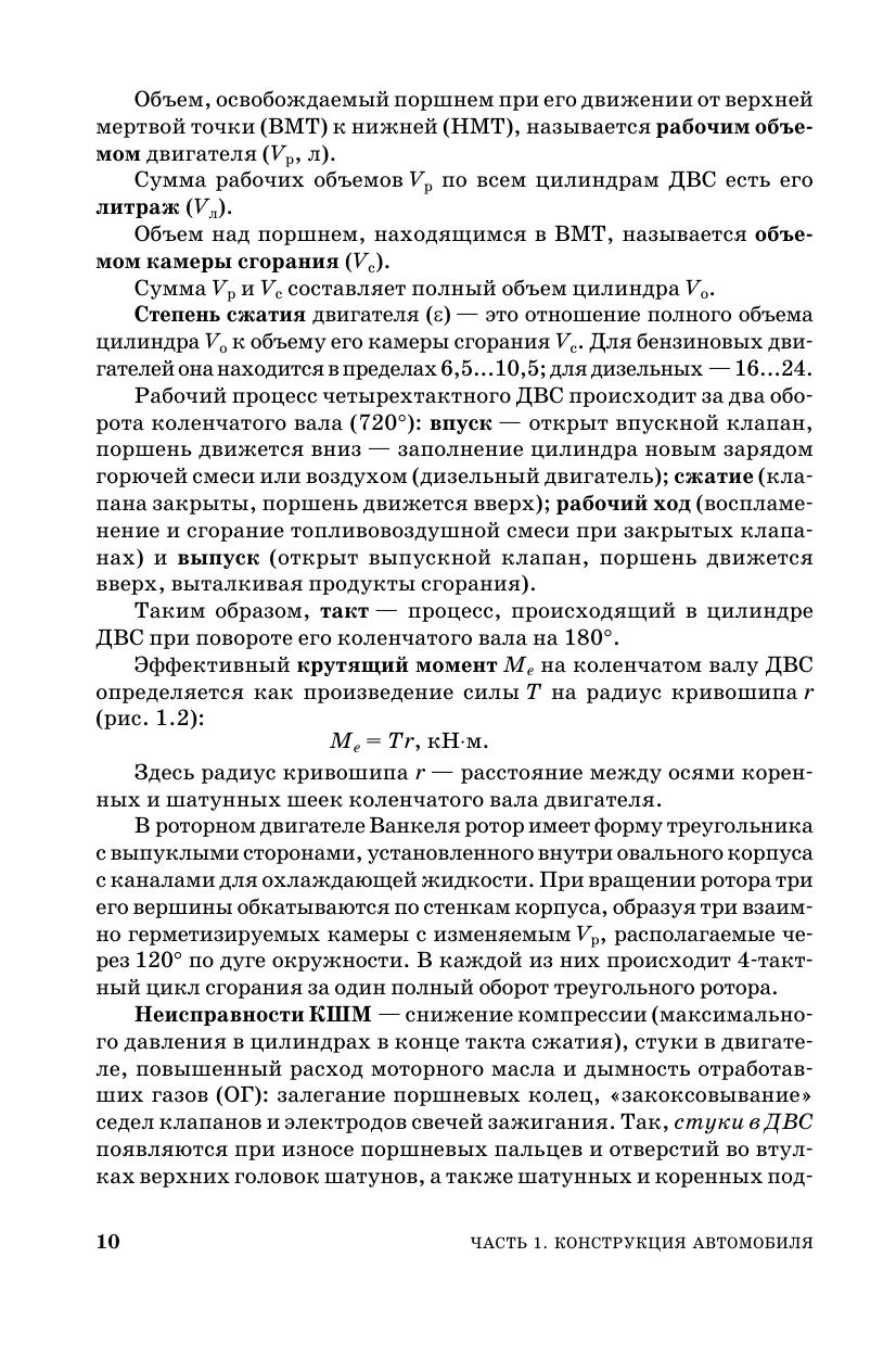 Пособие разработано в соответствии с программой с целью обеспечения возможности самостоятельной работы по изучению курса. Дан анализ конструктивных решений механизмов и систем двигателей, основных элементов трансмиссии, несущей системы и систем управления автомобиля на базе предъявляемых требований и классификационных признаков с рассмотрением принципиальных схем, рабочих процессов и характерных неисправностей. Приведены методики расчета основных эксплуатационных свойств, проявляющихся в процессе движения автомобиля. Выполнены примеры проверочных расчетов по оценке нагруженности деталей трансмиссии, подвески автомобиля, рулевого управления и тормозных систем. Издание предназначено для бакалавров, обучающихся по профилям «Автомобили и автомобильное хозяйство» и «Сервис транспортных средств и технологических машин» направления подготовки «Эксплуатация транспортно-технологических машин и комплексов».