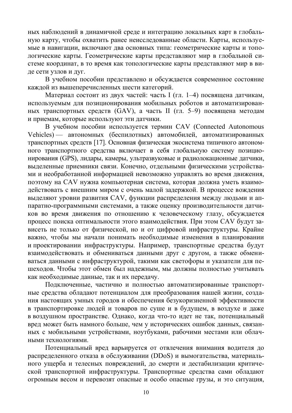 В учебное пособие включена информация о датчиках для точного счета, направлении движения и мобильных устройствах типичной конфигурации, наземных радиомаякаях и GPS-навигаторах, датчиках времени, дальности полета и местоположении на основе карты, системах измерения времени, дальности, обнаружении и оповещении водителя, дальномерах. Изложены методы счисления пути, измерения и уменьшения погрешностей одометрии. Представлены акселерометры, гироскопы и активные маяки инерциальной навигации, датчики бокового обзора и навигационные маркеры автономных транспортных средств, методы построения карт и объединения датчиков, позиционирования на основе визуальноого восприятия. Учебное пособие предназначено для студентов вузов, обучающихся по специальностям «Техника и технологии наземного транспорта», «Сервис» с дисциплиной «Электромобили и гибридные автомобили», «Управление в технических системах» с профилем «Системы и технические средства автоматизации и управления».