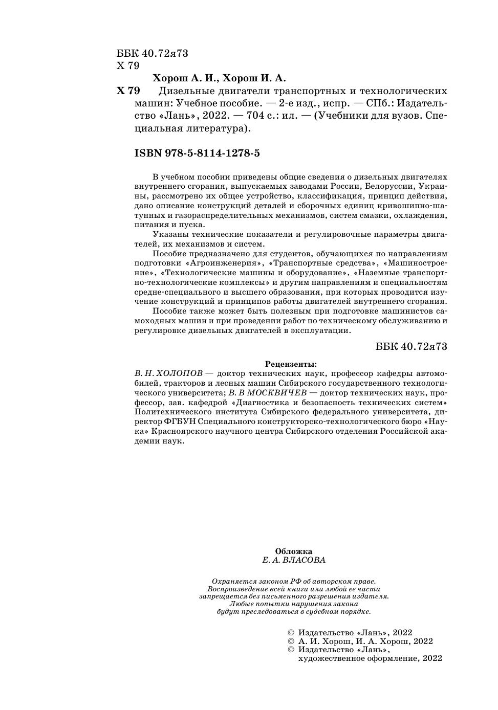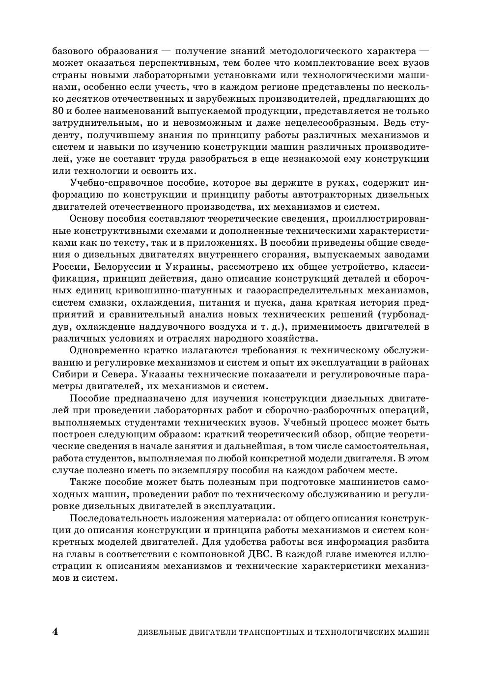 В учебном пособии приведены общие сведения о дизельных двигателях внутреннего сгорания, выпускаемых заводами России, Белоруссии, Украины, рассмотрено их общее устройство, классификация, принцип действия, дано описание конструкций деталей и сборочных единиц кривошипно-шатунных и газораспределительных механизмов, систем смазки, охлаждения, питания и пуска. Указаны технические показатели и регулировочные параметры двигателей, их механизмов и систем. Пособие предназначено для изучения конструкции дизельных двигателей при проведении лабораторных работ и сборочно-разборочных операций, выполняемых студентами вузов. Пособие может быть полезным при подготовке машинистов самоходных машин, а также при проведении работ по техническому обслуживанию и регулировке дизельных двигателей в эксплуатации.