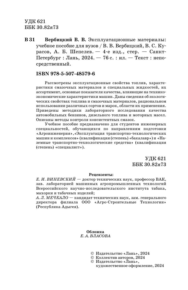 Рассмотрены эксплуатационные свойства топлив, характеристики смазочных материалов и специальных жидкостей, их ассортимент, основные показатели качества, влияющие на технико-экономические характеристики машин. Даны сведения об экологических свойствах топлива и смазочных материалов, рациональном использовании различных сортов и марок, области их применения. Приведены методики лабораторного исследования качества автомобильных бензинов, дизельного топлива и моторных масел. Описаны методы контроля консистентных смазок. Учебное пособие предназначено для студентов инженерных специальностей, обучающихся по направлениям подготовки «Агроинженерия», «Эксплуатация транспортно-технологических машин и комплексов» (квалификация (степень) «бакалавр») и «Наземные транспортно-технологические средства» (квалификация (степень) «специалист»).