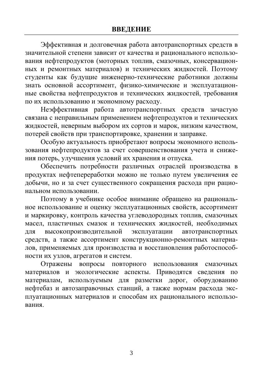 Описаны классификация, ассортимент, состав, физико-химические и эксплуатационные свойства, методы оценки свойств топлив, смазочных материалов, технических жидкостей для автотранспортных средств с различными ДВС. Рассмотрены конструкционно-ремонтные материалы, материалы для разметки автомобильных дорог, оборудование нефтебаз и автозаправочных станций. Учебник предназначен для студентов вузов, обучающихся по УГС «Техника и технологии наземного транспорта», и инженерно-технических работников в области эксплуатации автотранспортных средств.