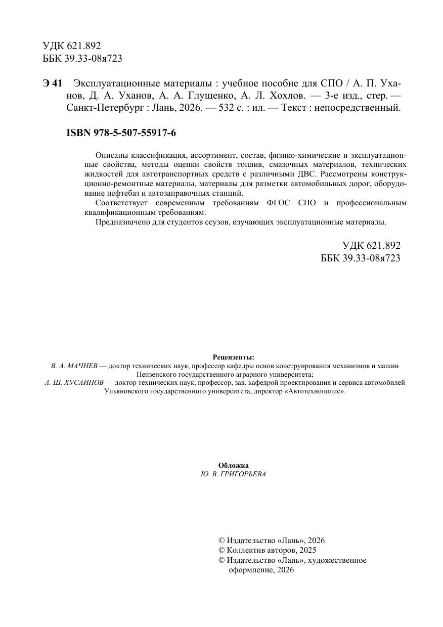 Описаны классификация, ассортимент, состав, физико-химические и эксплуатационные свойства, методы оценки свойств топлив, смазочных материалов, технических жидкостей для автотранспортных средств с различными ДВС. Рассмотрены конструкционно-ремонтные материалы, материалы для разметки автомобильных дорог, оборудование нефтебаз и автозаправочных станций. Соответствует современным требованиям ФГОС СПО и профессиональным квалификационным требованиям. Предназначено для студентов ссузов, изучающих эксплуатационные материалы.