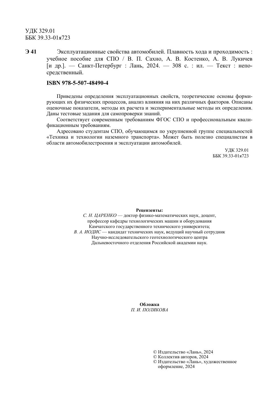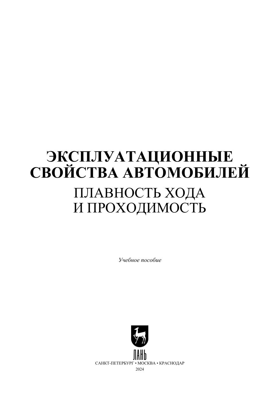 Приведены определения эксплуатационных свойств, теоретические основы формирующих их физических процессов, анализ влияния на них различных факторов. Описаны оценочные показатели, методы их расчета и экспериментальные методы их определения. Даны тестовые задания для самопроверки знаний. Соответствует современным требованиям ФГОС СПО и профессиональным квалификационным требованиям. Адресовано студентам СПО, обучающимся по укрупненной группе специальностей «Техника и технологии наземного транспорта». Может быть полезно специалистам в области автомобилестроения и эксплуатации автомобилей.
