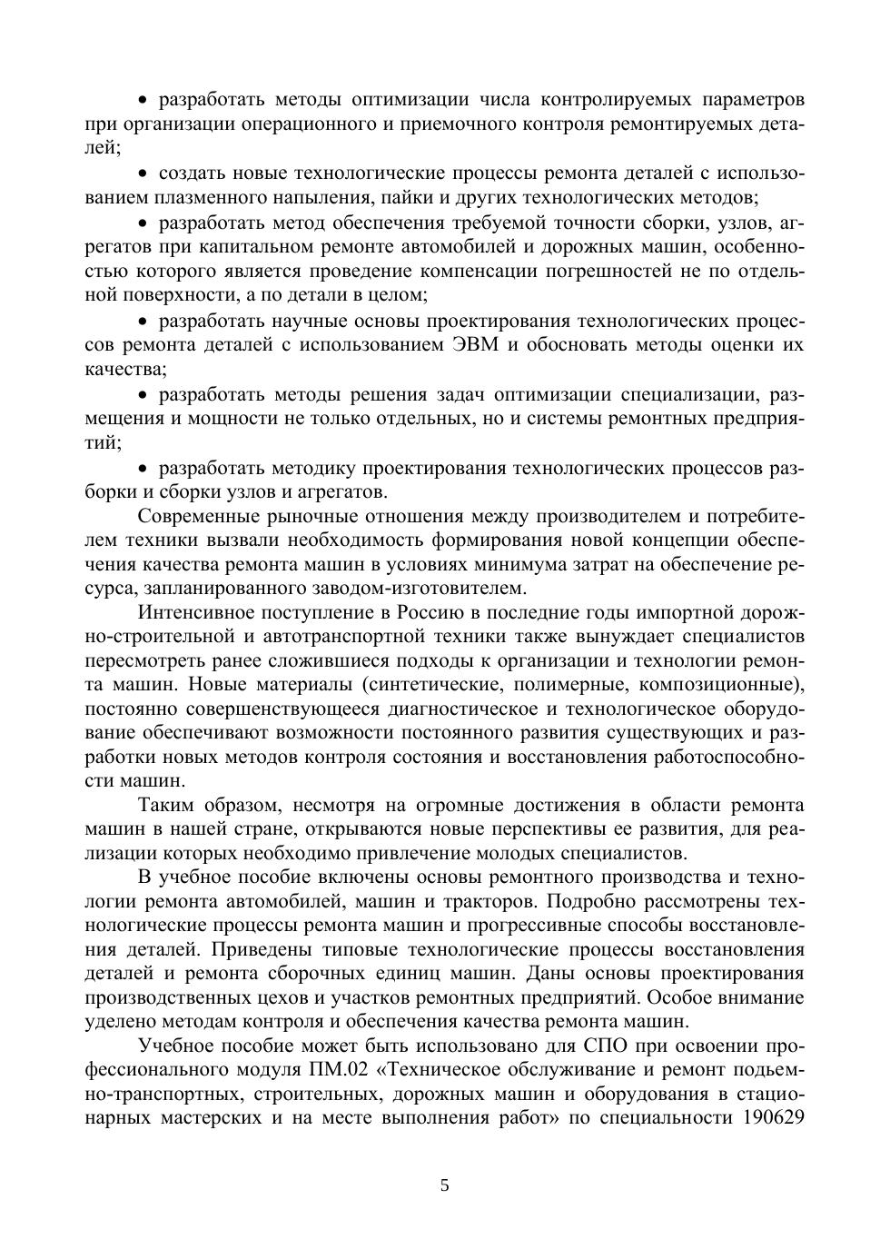 В учебное пособие включены следующие разделы: техническое обслуживание и ремонт автомобилей, основы эксплуатации и ремонта тракторов, технология капитального ремонта автомобилей, машин и тракторов и проектирование эксплуатационного предприятия по техническому обслуживанию и ремонту машин. Соответствует современным требованиям Федерального государственного образовательного стандарта среднего профессионального образования и профессиональным квалификационным требованиям. Предназначено для студентов средних профессиональных учебных заведений, обучающихся по специальностям: «Механизация сельского хозяйства», «Эксплуатация и ремонт сельскохозяйственной техники и оборудования», «Техническая эксплуатация подъемно-транспортных, строительных, дорожных машин и оборудования» (по отраслям).
