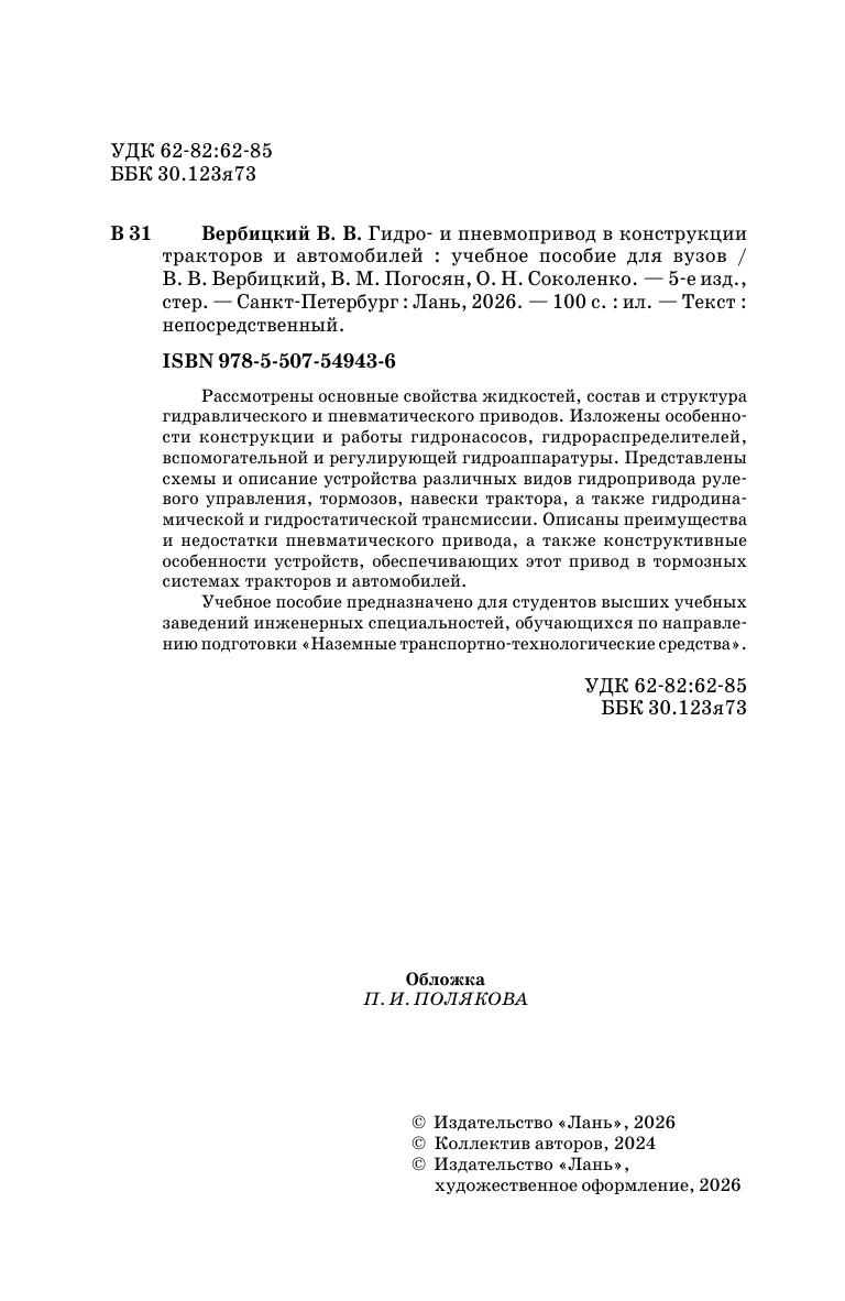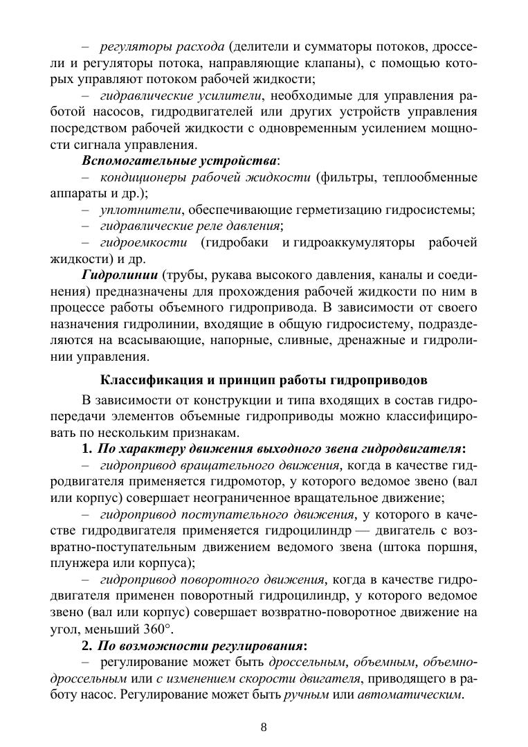 Рассмотрены основные свойства жидкостей, состав и структура гидравлического и пневматического приводов. Изложены особенности конструкции и работы гидронасосов, гидрораспределителей, вспомогательной и регулирующей гидроаппаратуры. Представлены схемы и описание устройства различных видов гидропривода рулевого управления, тормозов, навески трактора, а также гидродинамической и гидростатической трансмиссии. Описаны преимущества и недостатки пневматического привода, а также конструктивные особенности устройств, обеспечивающих этот привод в тормозных системах тракторов и автомобилей. Учебное пособие предназначено для студентов высших учебных заведений инженерных специальностей, обучающихся по направлению подготовки «Наземные транспортно-технологические средства».