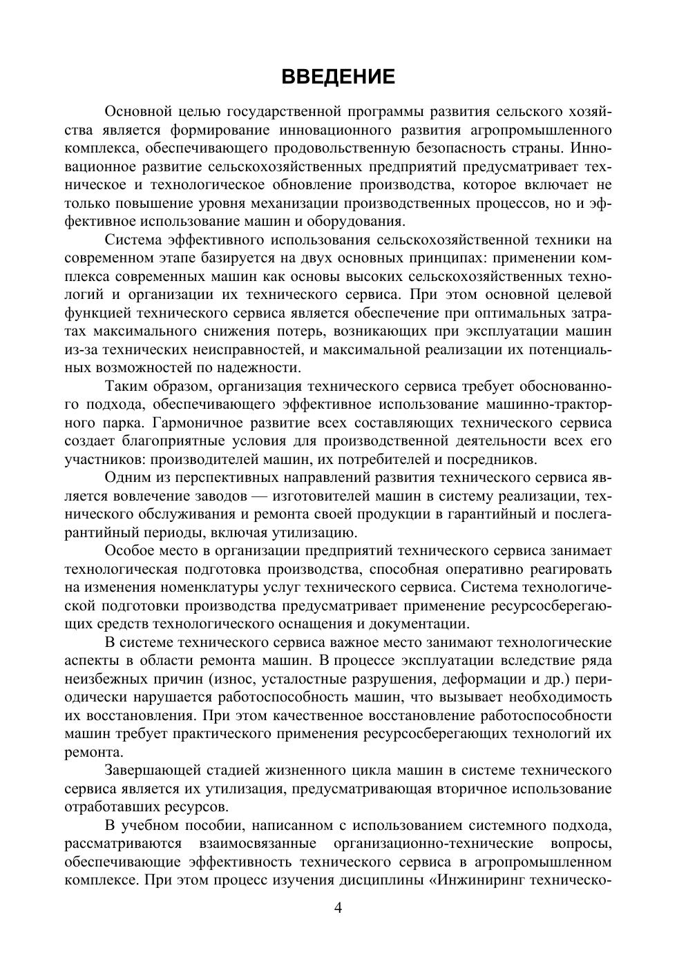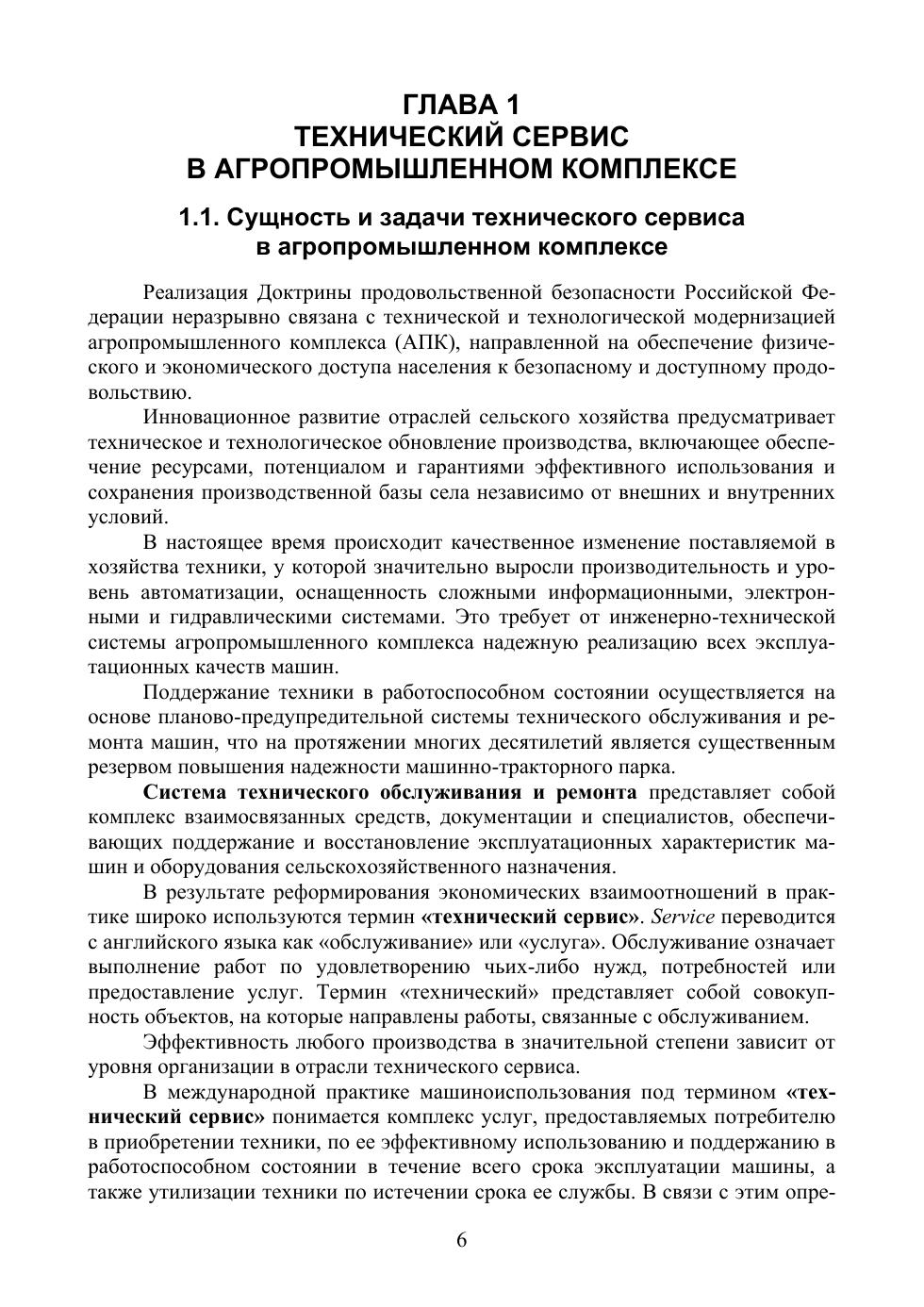 Изложены аспекты организации технического сервиса, структуры системы обеспечения работоспособности машин, формирования и развития дилерских центров, системы технологической подготовки производства предприятий технического сервиса. Приведены технологические схемы утилизации и рециклинга сельскохозяйственной техники в системе технического сервиса. Особое внимание уделено ресурсосберегающим технологическим процессам технического обслуживания и ремонта машин и оборудования АПК. Содержание учебного пособия соответствует актуальным требованиям Федерального государственного образовательного стандарта высшего образования. Книга адресована студентам высших учебных заведений, обучающимся по направлению подготовки «Агроинженерия», а также аспирантам, преподавателям и специалистам инженерно-технической сферы АПК.