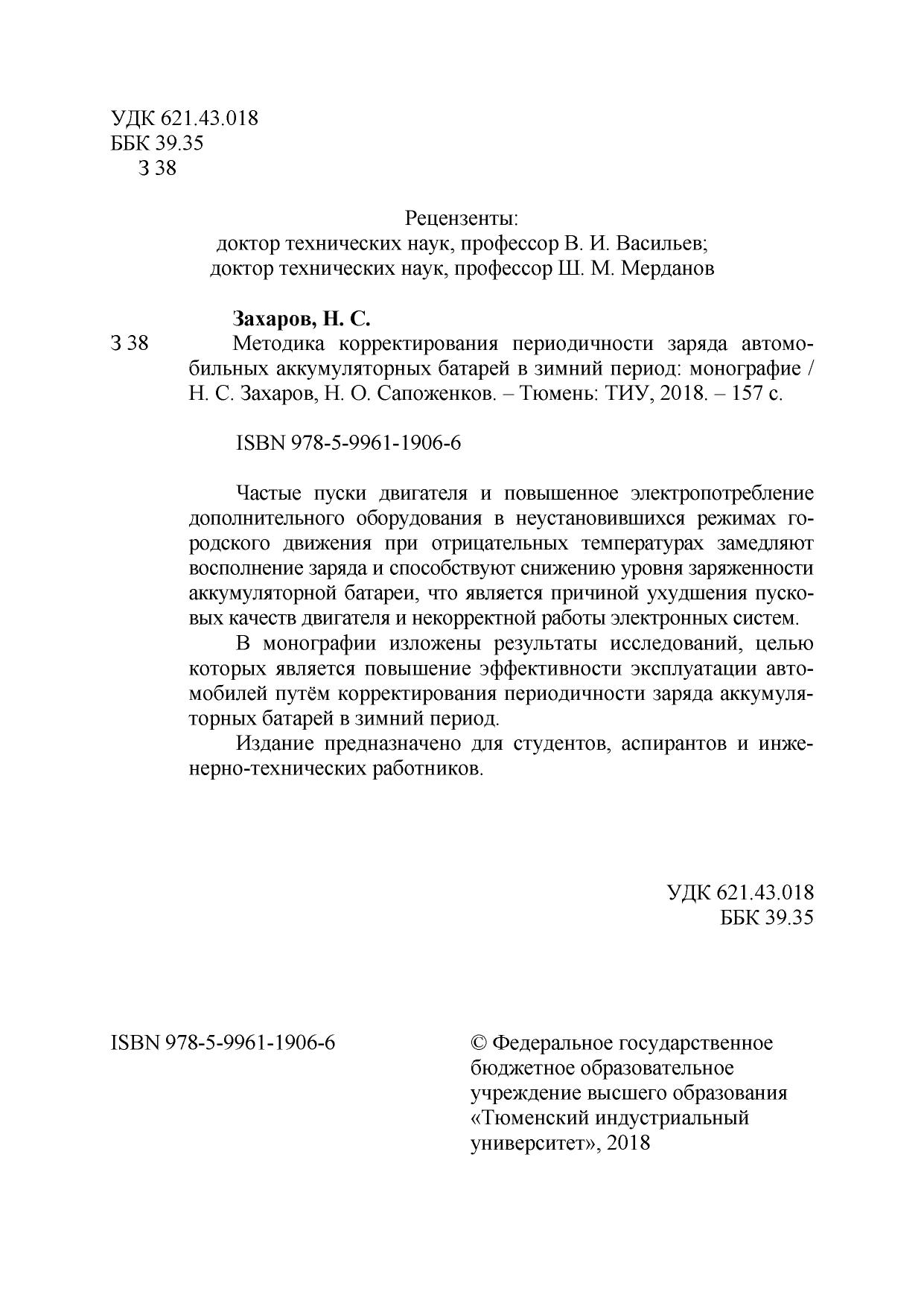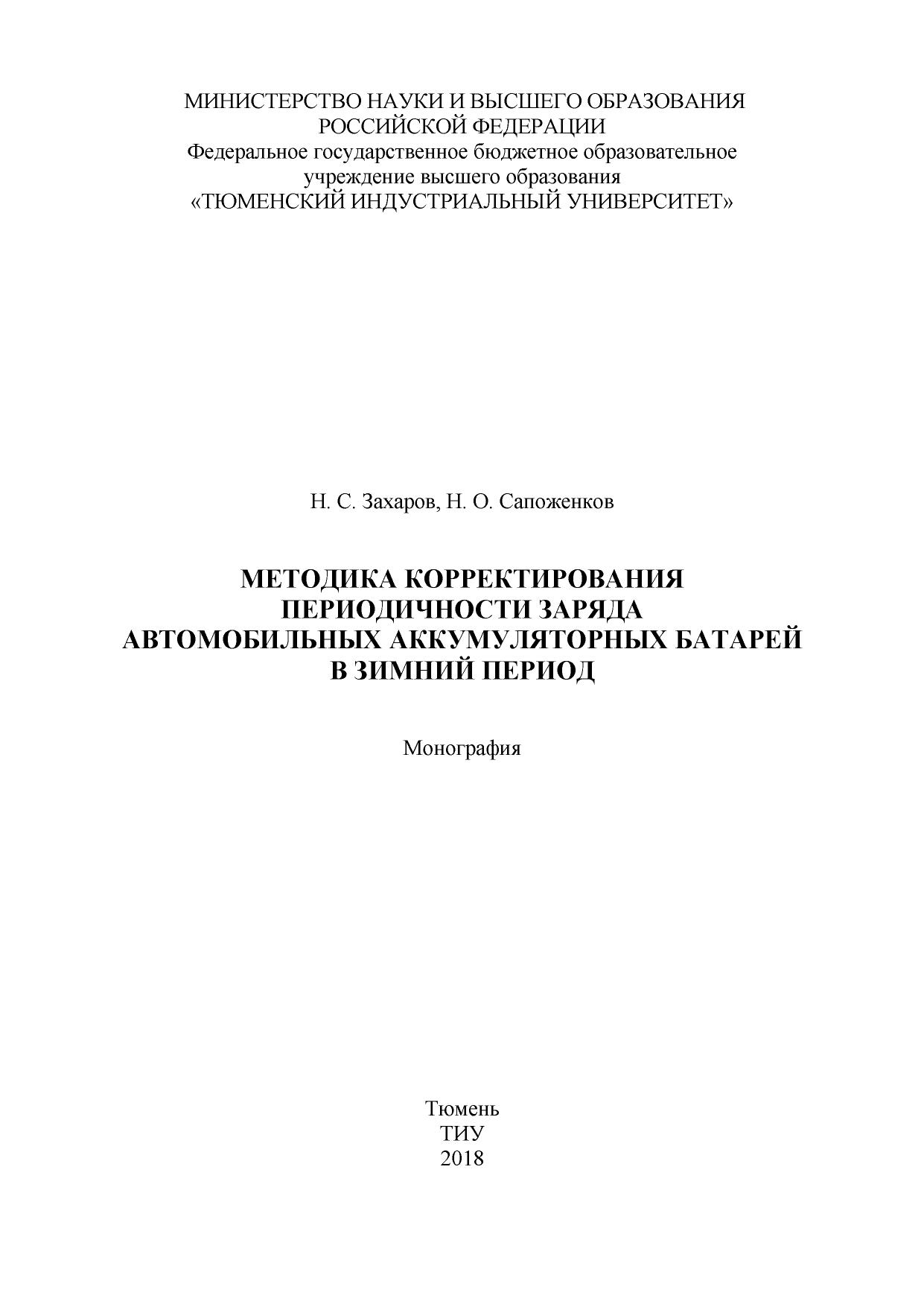 В монографии изложены результаты исследований, целью которых является повышение эффективности эксплуатации автомобилей путём корректирования периодичности заряда аккумуляторных батарей в зимний период.