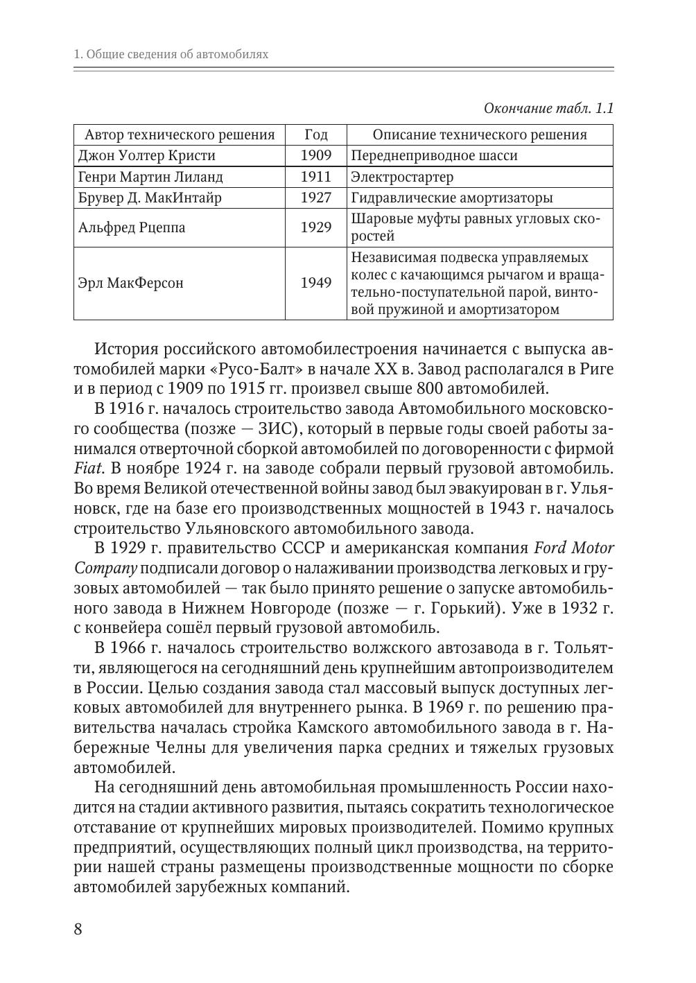 являемые к ним. Текст основной части разделен на главы по описываемым узлам автомобиля с пояснением принципа работы, рассмотрением устройства существующих конструкций и указанием вектора развития описываемых частей. Для узлов