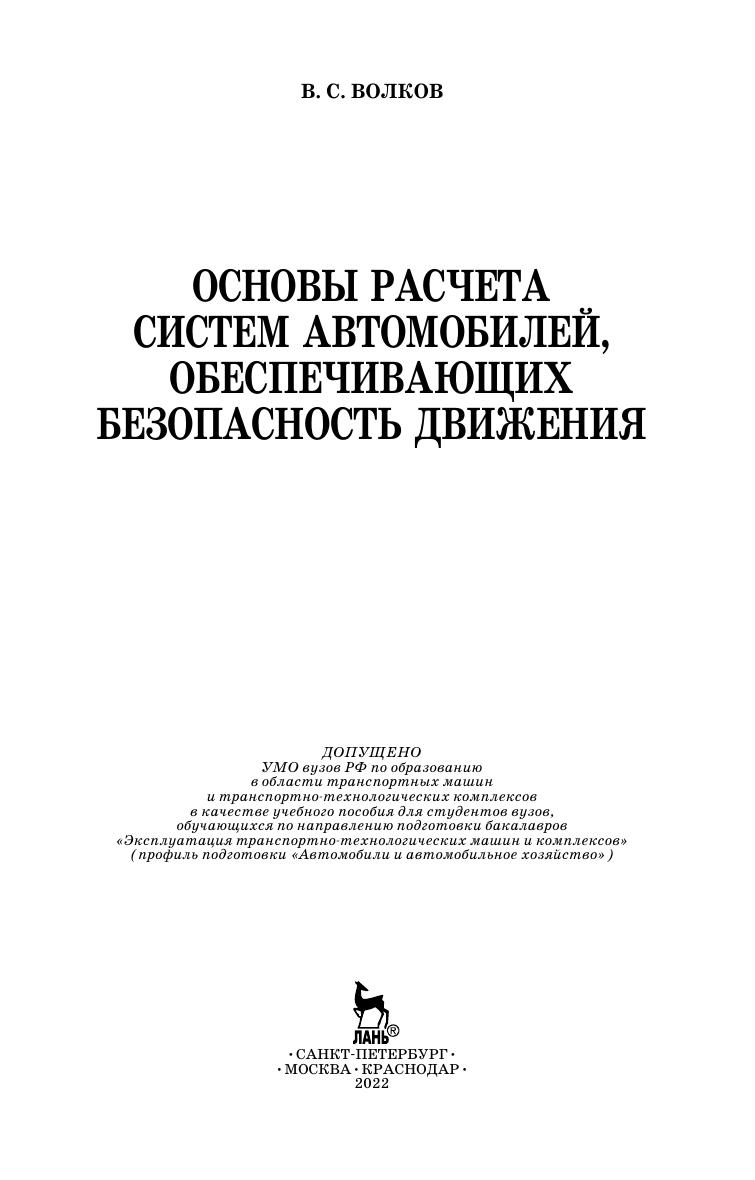 Основы расчета систем автомобилей, обеспечивающих безопасность движения