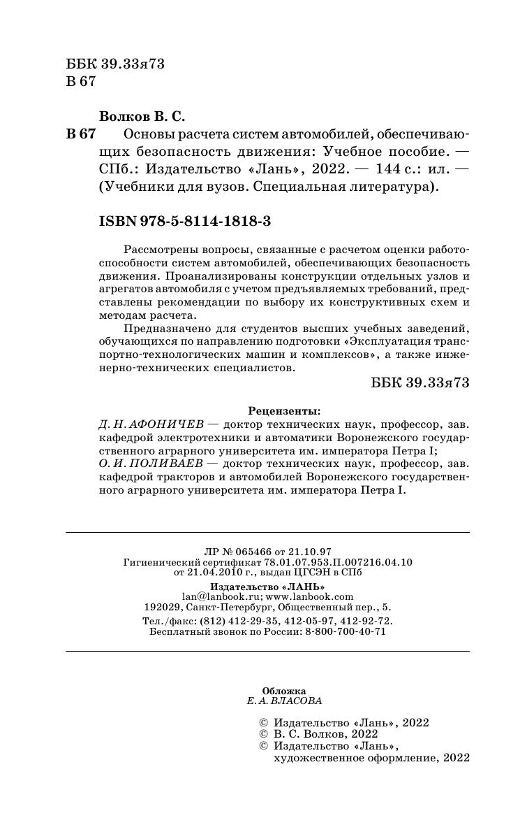 Рассмотрены вопросы, связанные с расчетом оценки работоспособности систем автомобилей, обеспечивающих безопасность движения. Проанализированы конструкции отдельных узлов и агрегатов автомобиля с учетом предъявляемых требований, представлены рекомендации по выбору их конструктивных схем и методам расчета. Предназначено для студентов высших учебных заведений, обучающихся по направлению подготовки «Эксплуатация транспортно-технологических машин и комплексов», а также инженерно-технических специалистов.