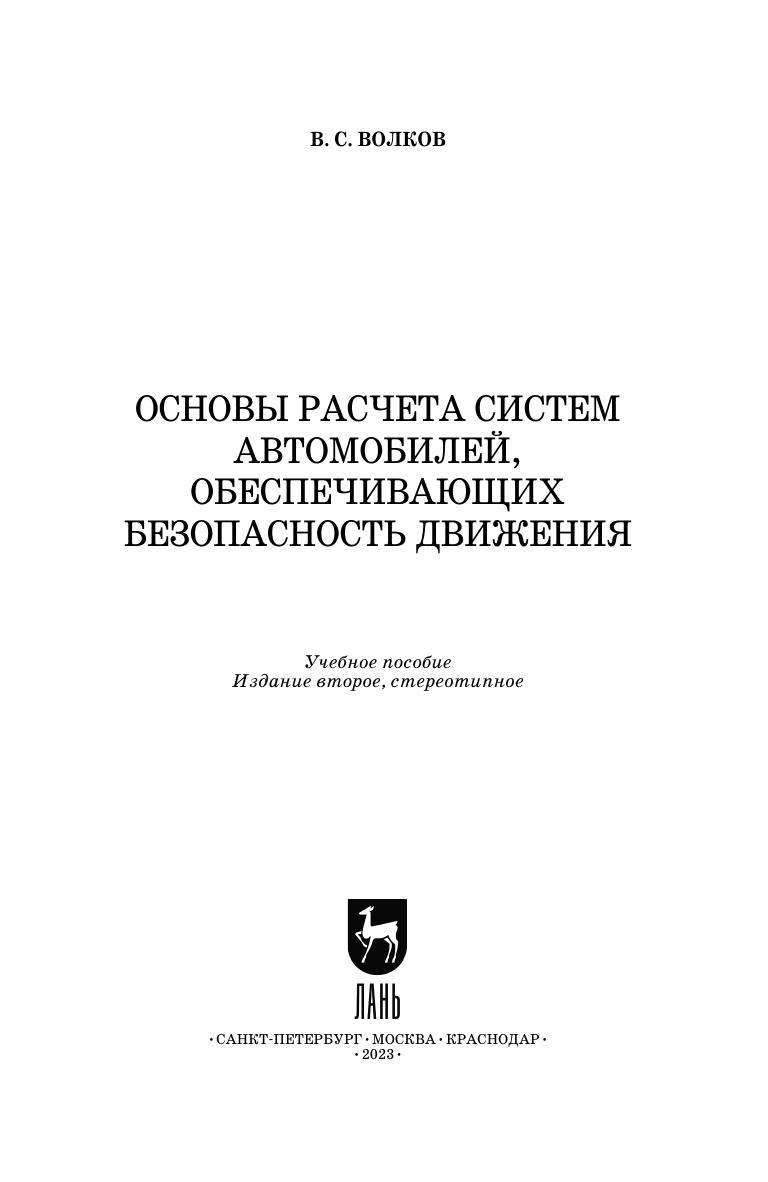 Основы расчета систем автомобилей, обеспечивающих безопасность движения
