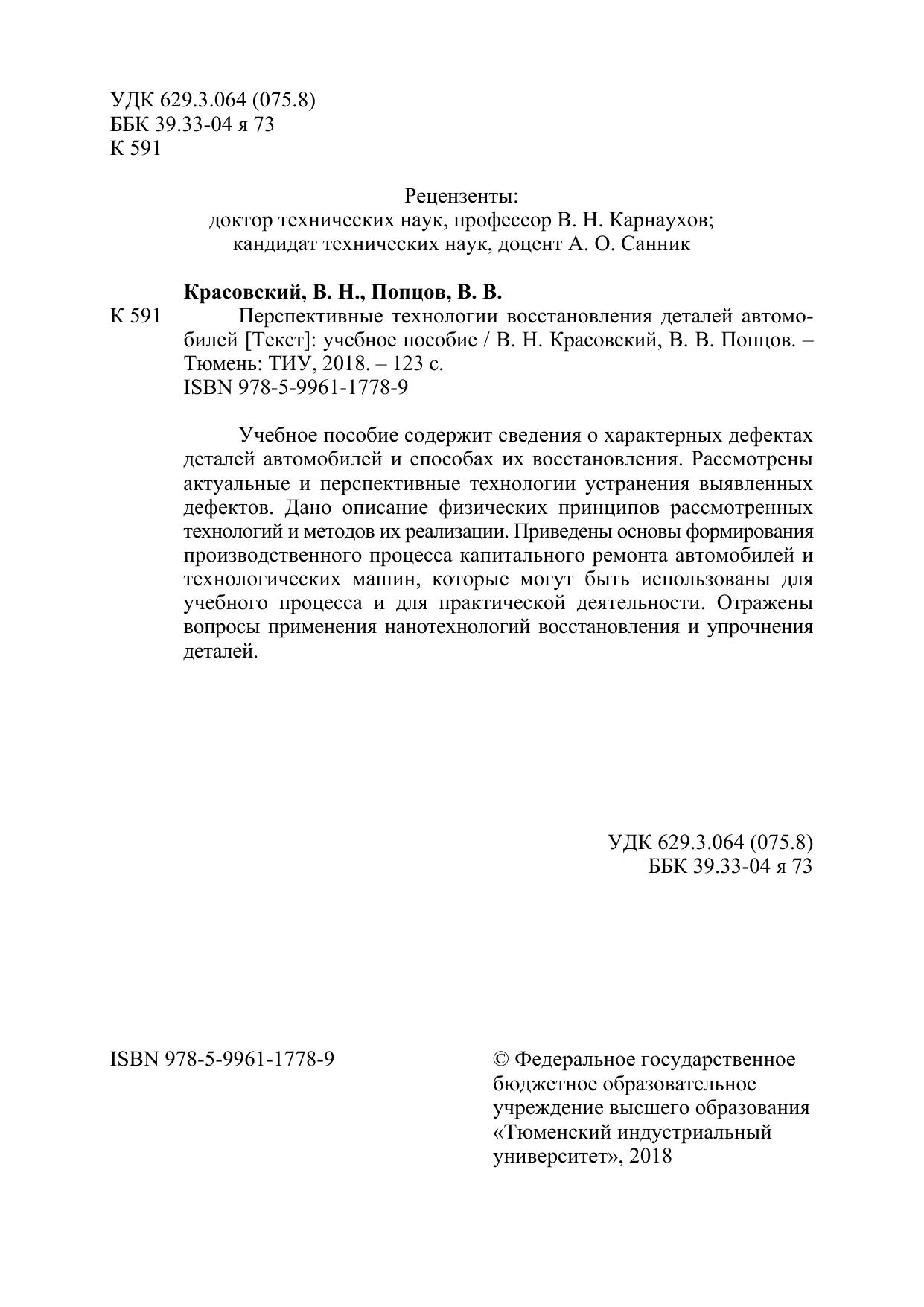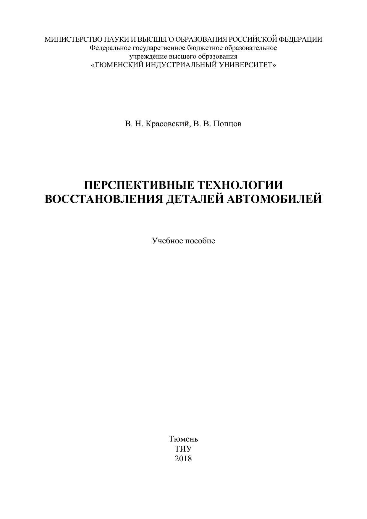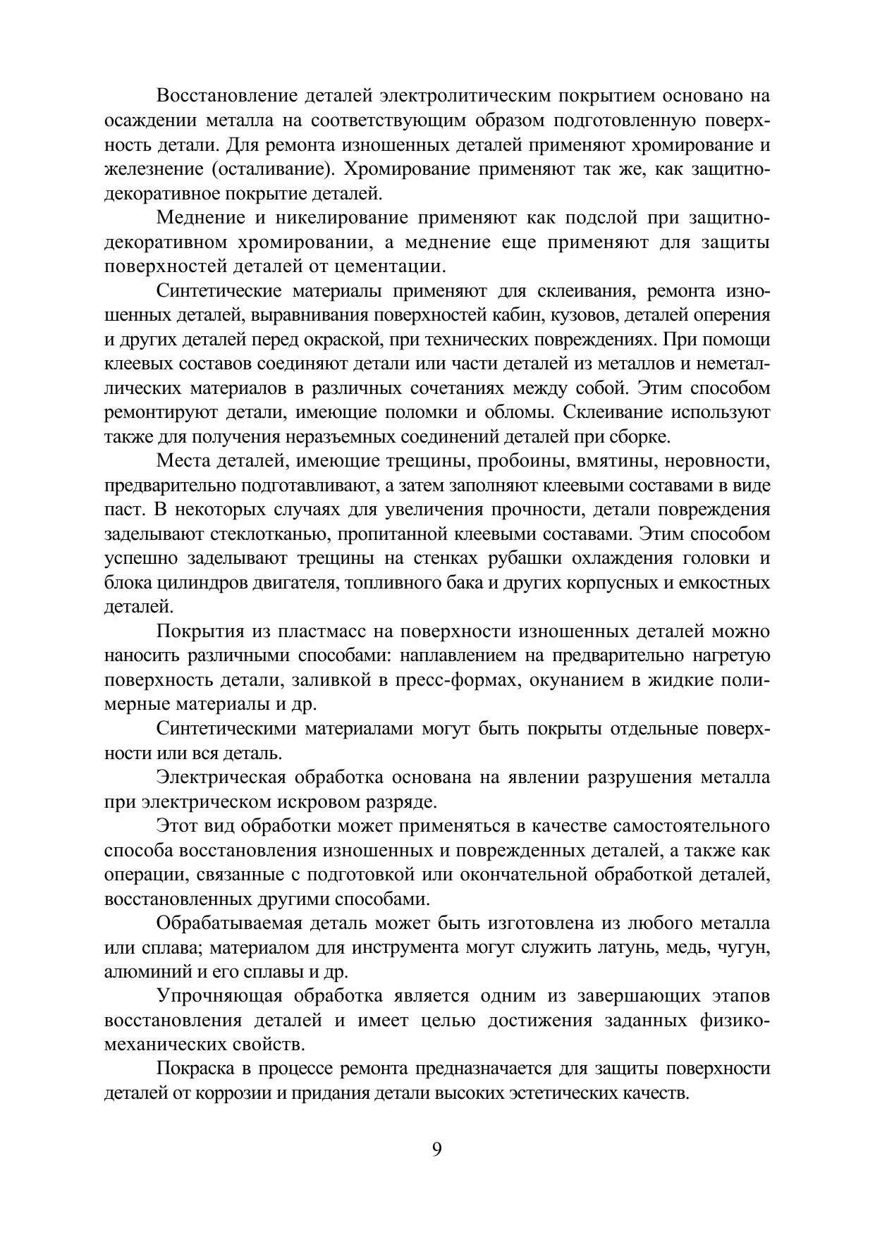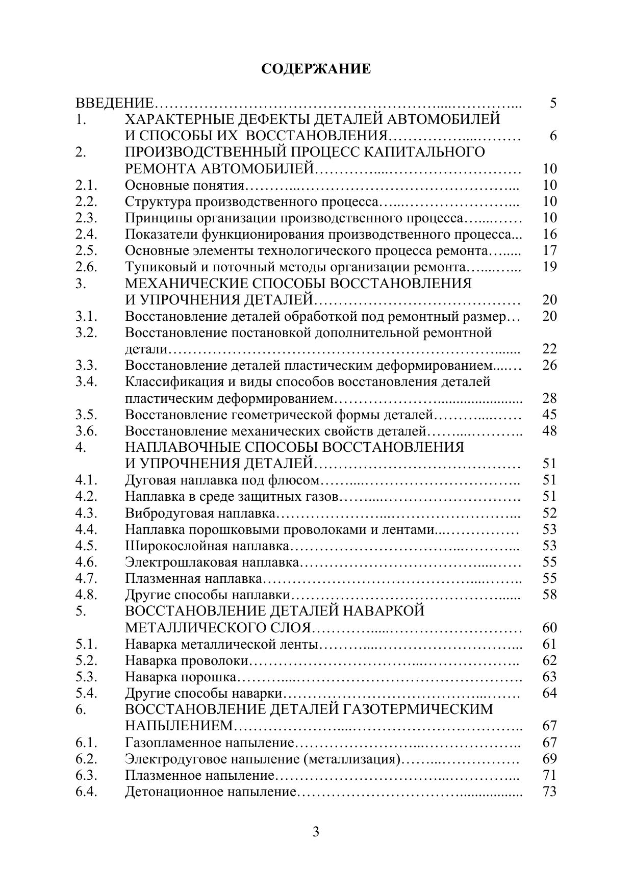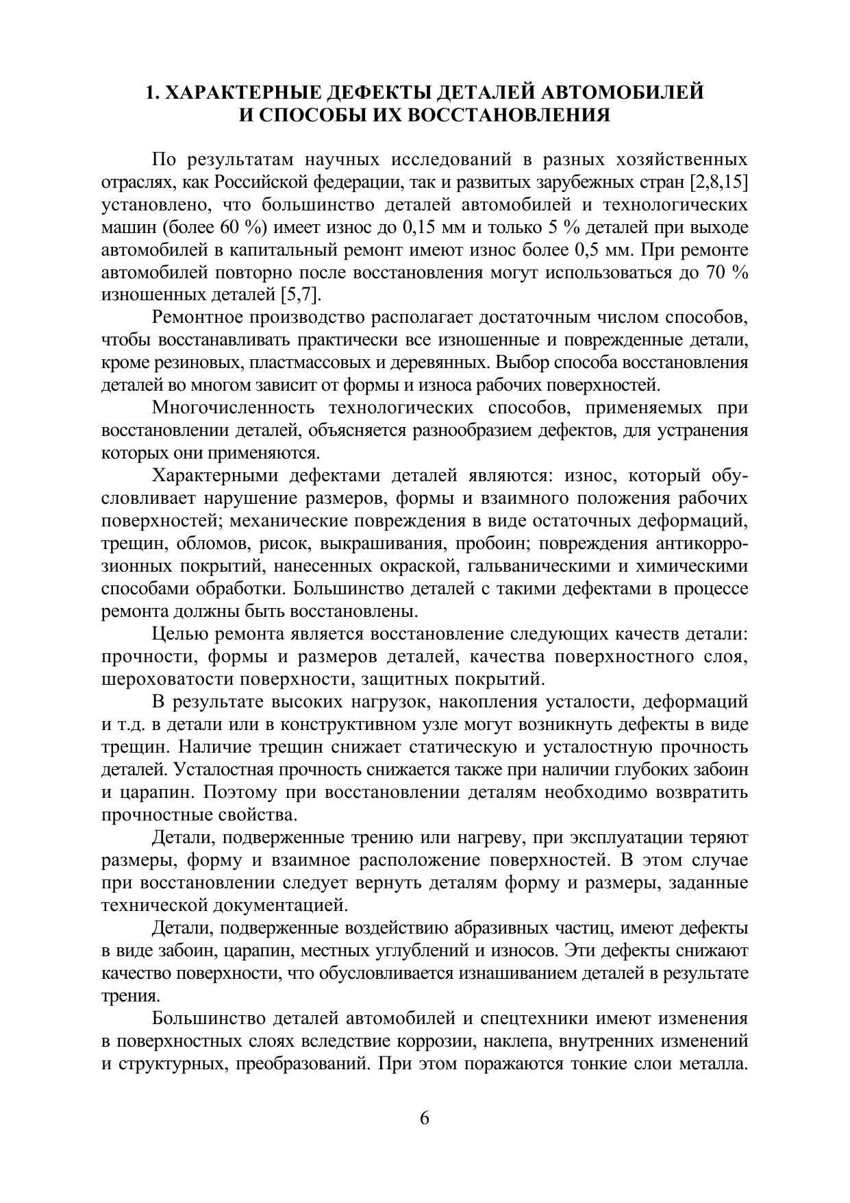 Учебное пособие содержит сведения о характерных дефектах деталей автомобилей и способах их восстановления. Рассмотрены актуальные и перспективные технологии устранения выявленных дефектов. Дано описание физических принципов рассмотренных технологий и методов их реализации. Приведены основы формирования производственного процесса капитального ремонта автомобилей и технологических машин, которые могут быть использованы для учебного процесса и для практической деятельности. Отражены вопросы применения нанотехнологий восстановления и упрочнения деталей.