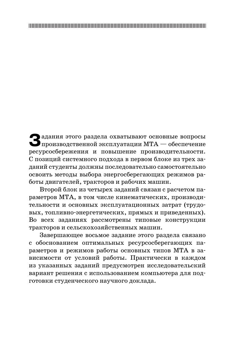 Изложены в виде отдельных заданий краткие методические указания и методы решения практических задач по основным разделам курса эксплуатации машинно-тракторного парка с учетом современных требований ресурсосбережения и высокой производительности. В каждом задании приведено до 30 вариантов решения, включая работы исследовательского характера. Предложены методы оптимального проектирования сельскохозяйственных производственных процессов. Для студентов вузов по агроинженерным специальностям.