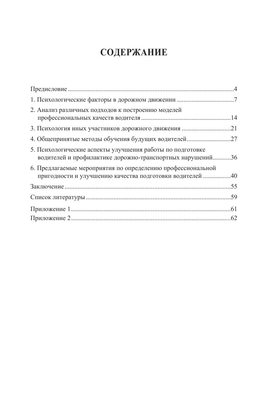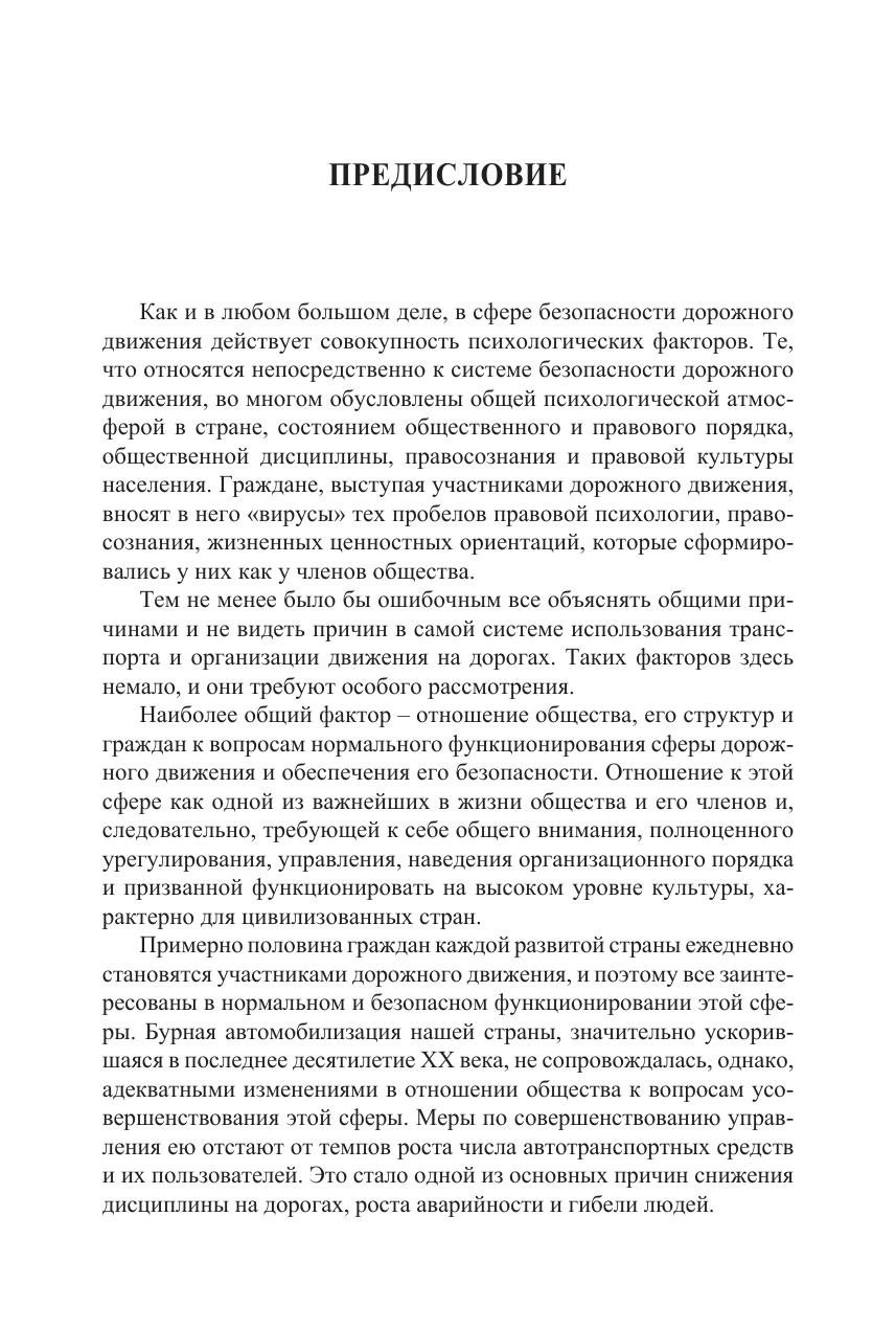 Рассмотрены психологические факторы в дорожном движении в России. Дано определение понятия «психологический фактор» дорожного движения. Предложен анализ различных подходов к построению психологической модели водителя. Освещена психология иных участников дорожного движения. Охарактеризованы общепринятые методы обучения будущих водителей. Раскрыты психологические аспекты улучшения работы по подготовке водителей и профилактике дорожно-транспортных нарушений. Предложены мероприятия по определению профессиональной пригодности и улучшению качества подготовки водителей. Для исследователей проблем безопасности дорожного движения. Может использоваться при подготовке и повышении квалификации кадров дорожно-транспортных служб, руководителей и специалистов автохозяйств. Представляет интерес для широкого круга лиц, занимающихся проблемами дорожного движения.