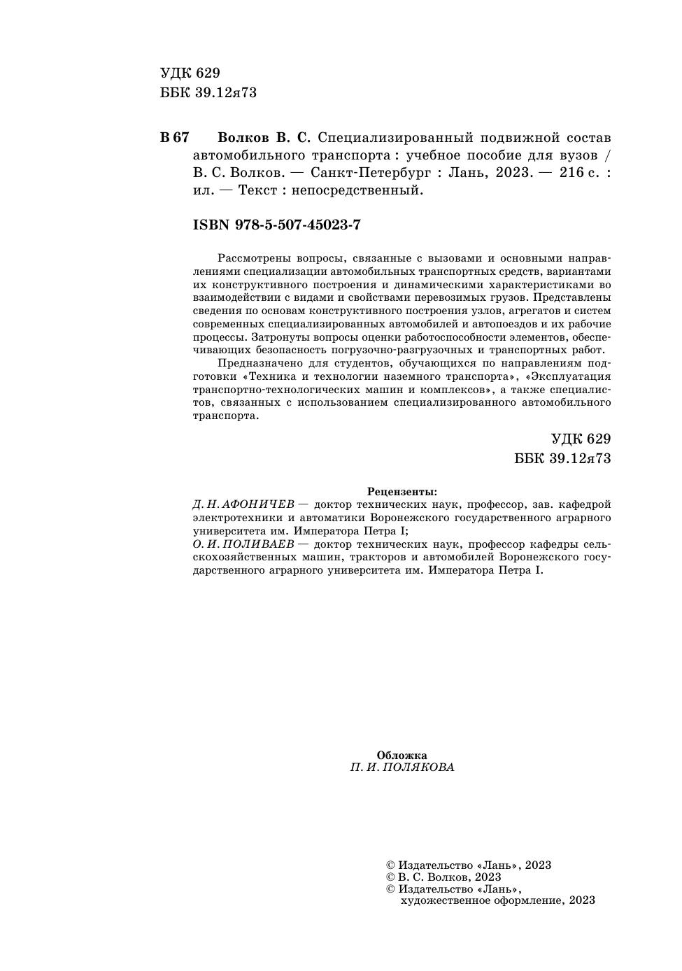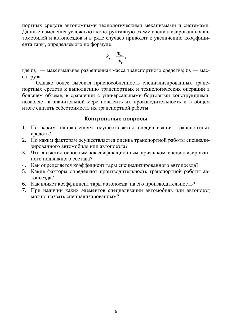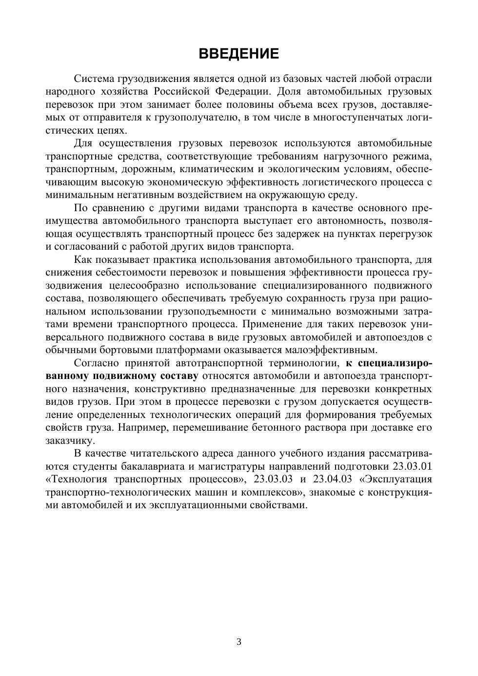 Рассмотрены вопросы, связанные с вызовами и основными направлениями специализации автомобильных транспортных средств, вариантами их конструктивного построения и динамическими характеристиками во взаимодействии с видами и свойствами перевозимых грузов. Представлены сведения по основам конструктивного построения узлов, агрегатов и систем современных специализированных автомобилей и автопоездов и их рабочие процессы. Затронуты вопросы оценки работоспособности элементов, обеспечивающих безопасность погрузочно-разгрузочных и транспортных работ. Предназначено для студентов, обучающихся по направлениям подготовки «Техника и технология технологии наземного транспорта», «Эксплуатация транспортно-технологических машин и комплексов», а также специалистов, связанных с использованием специализированного автомобильного транспорта.