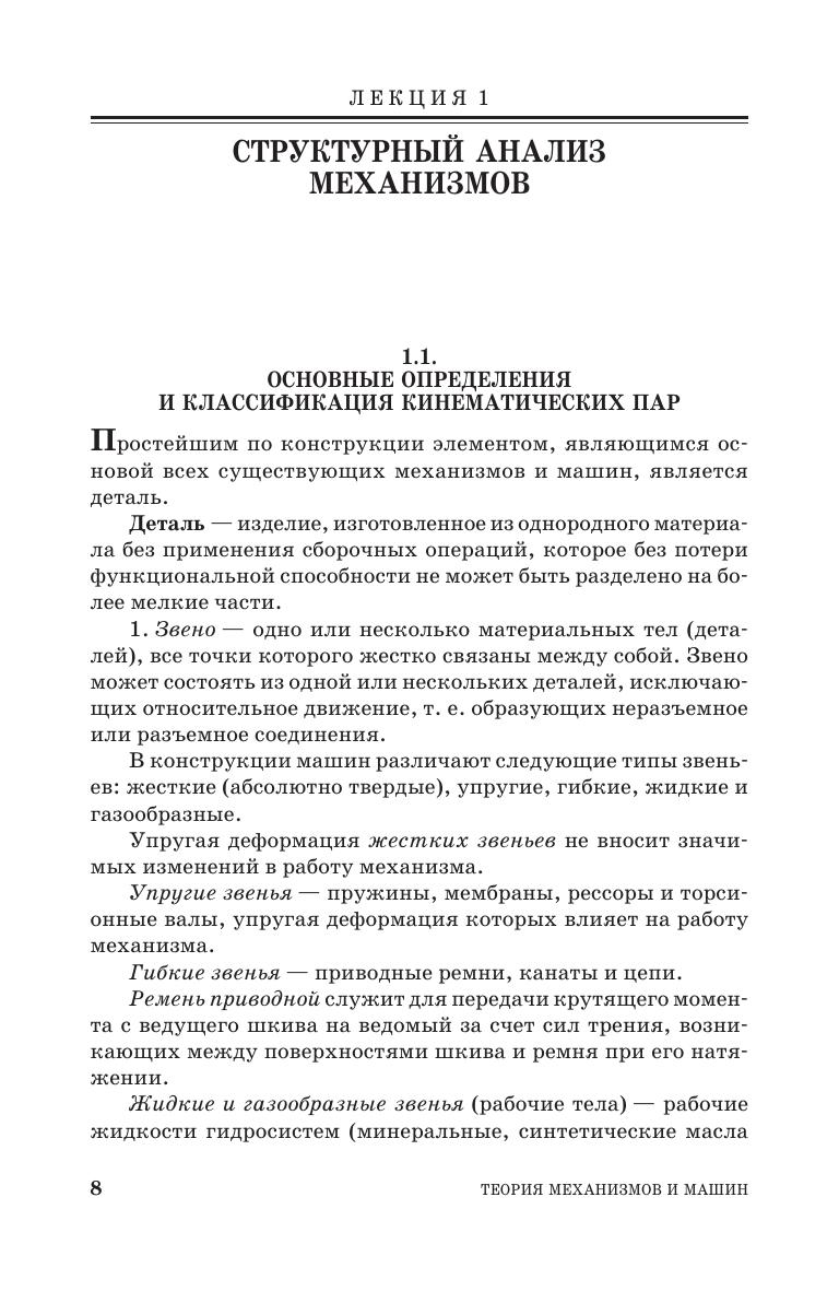 Изложено примерное содержание курса дисциплины «Теория механизмов и машин» на основе учебной программы для механических специальностей и направлений подготовки вузов. Последовательно приведены лекции, методики выполнения лабораторных работ и практических занятий по курсу. Даны примеры решения задач кинематического анализа и синтеза механизмов, пояснения для выполнения расчетно-графических работ. Рассмотрена методика выполнения курсового проекта на тему «Кинематическое и динамическое исследование машины с кривошипно-ползунным механизмом». Пособие предназначено для студентов технических вузов в области эксплуатации автомобильного транспорта (направление подготовки «Эксплуатация транспортно-технологических машин и комплексов» по профилям «Автомобили и автомобильное хозяйство» и «Автомобильный сервис») и строительной техники (специальность «Наземные транспортно-технологические средства», специализация «Подъемно-транспортные, строительные, дорожные средства и оборудование»).
