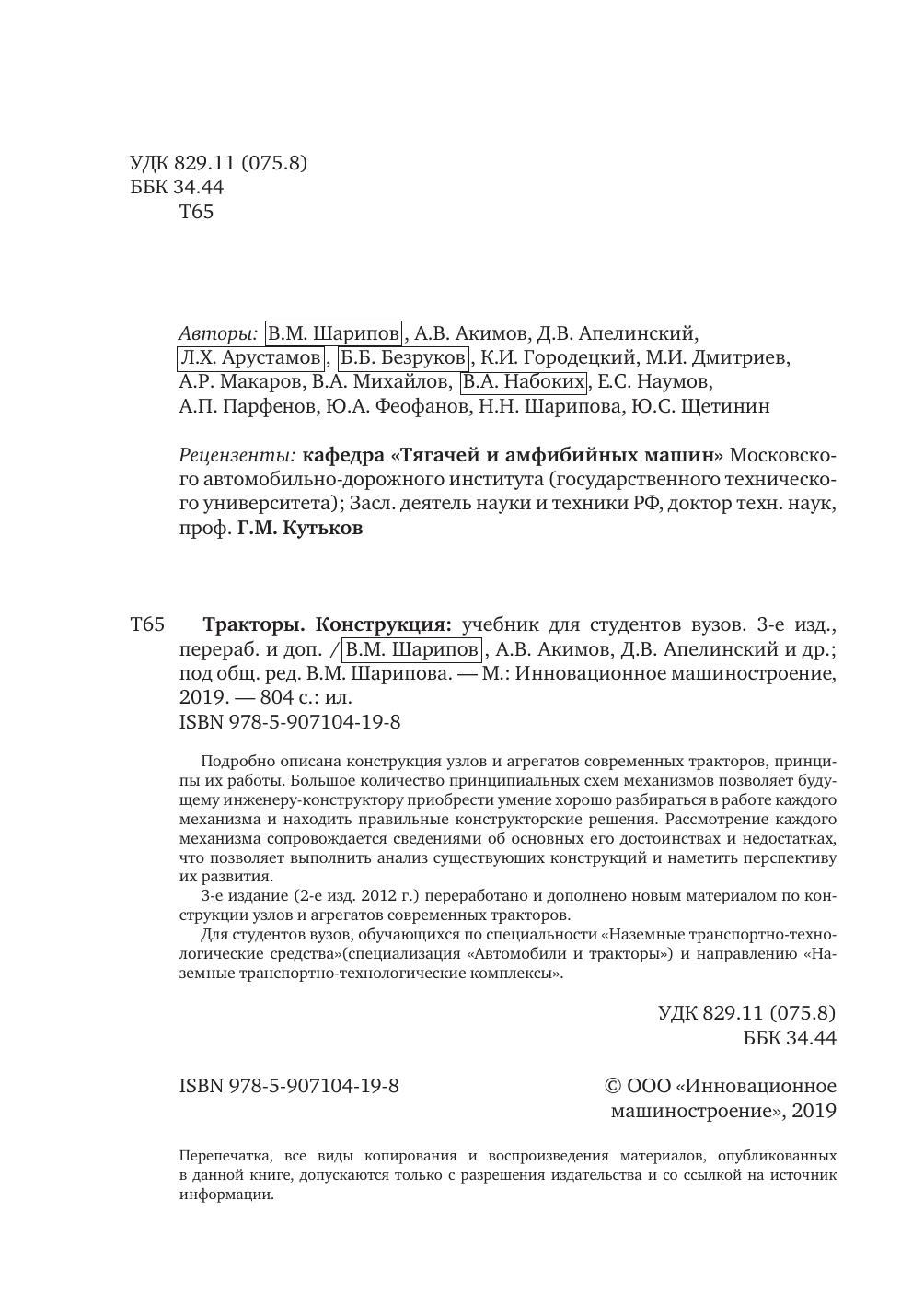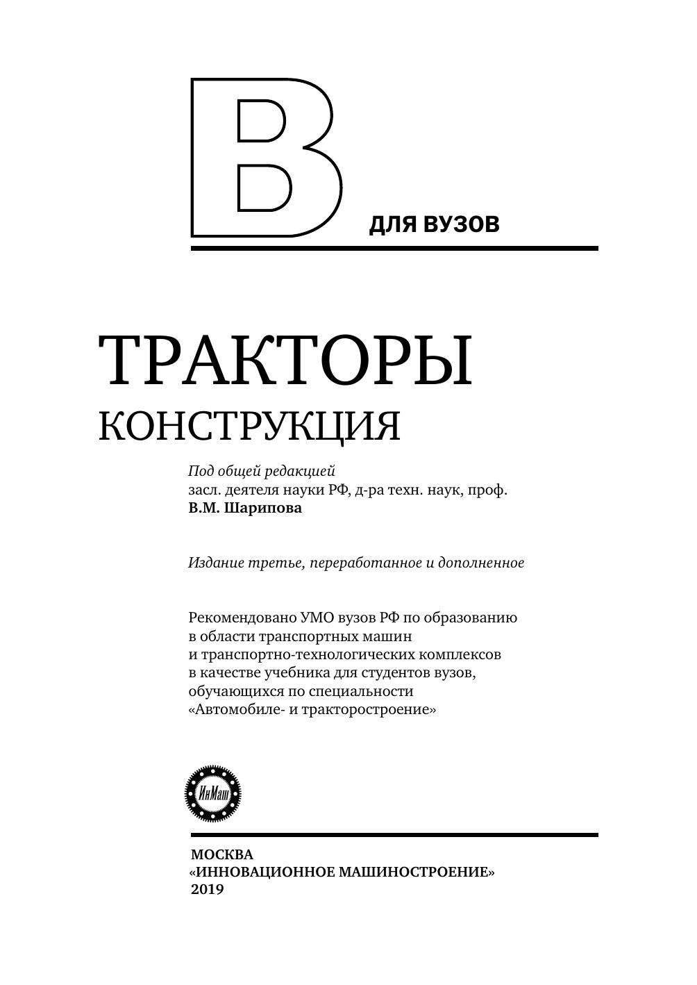 3-е издание (2-е изд. 2012 г.) переработано и дополнено новым материалом по конструкции узлов и агрегатов современных тракторов.