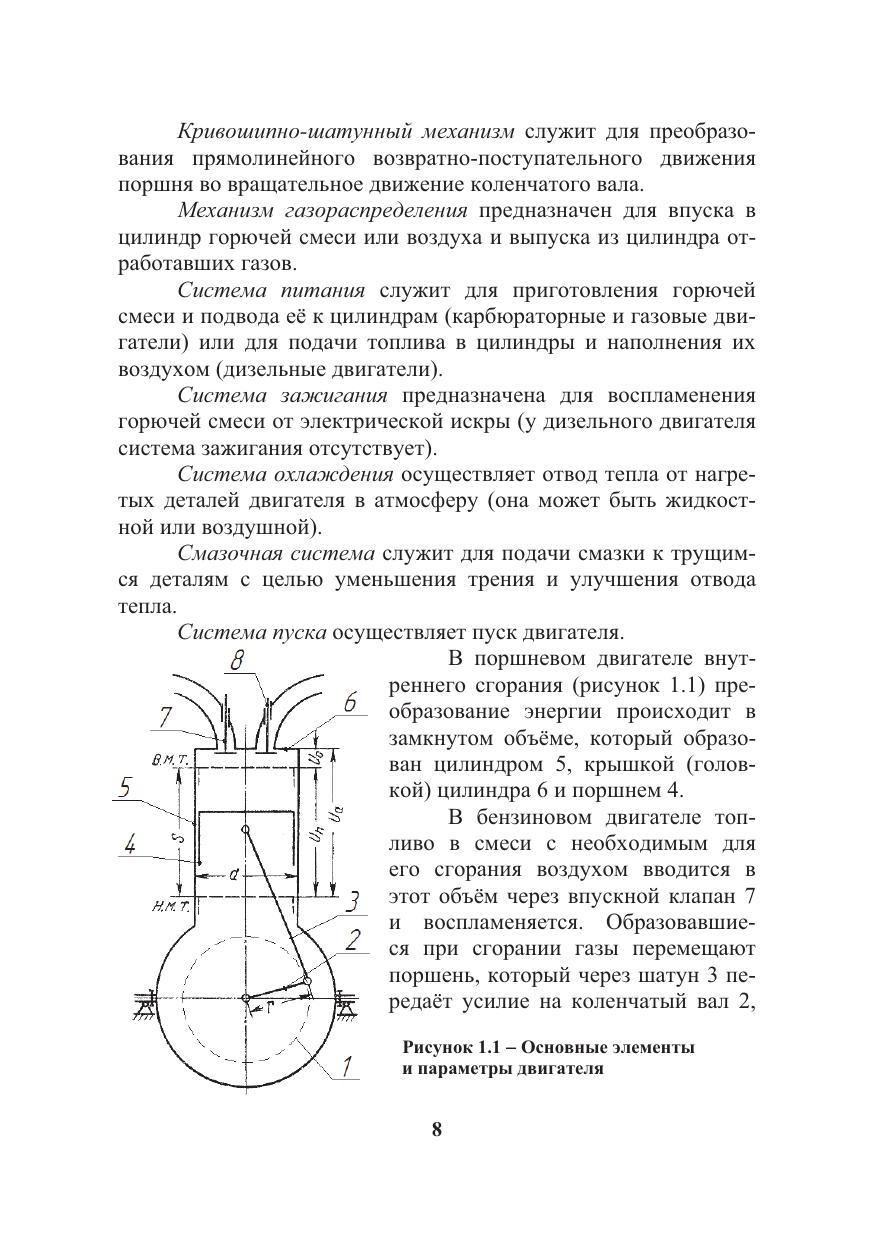 Приведено общее устройство и назначение системы питания двигателей внутреннего сгорания. Рассмотрено автоматическое регулирование режима работы двигателей, системы смазки, охлаждения и пуска. Дано сравнение четырёхтактных и двухтактных двигателей.