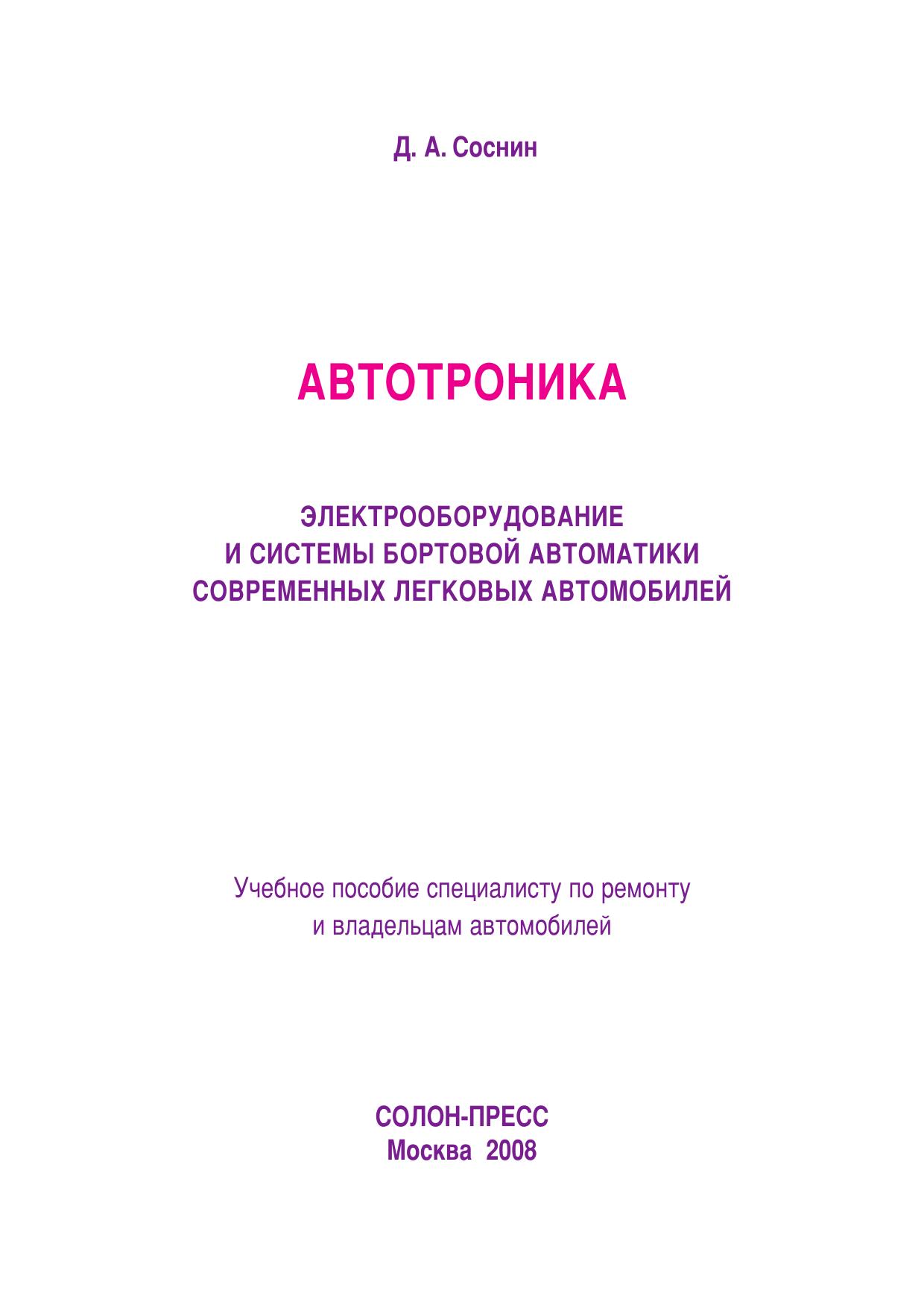 В учебном пособии в популярной форме изложены основные сведения о конструктивных особенностях, принципах действия, эксплуатационных характеристиках электрооборудования и систем бортовой автоматики современных легковых автомобилей. Описаны составные компоненты систем, диагностирование и ремонт некоторых из них.