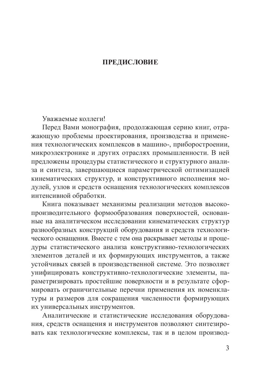 В монографии на основе статистического анализа объектов и процессов технологического комплекса показаны механизмы реализации методов высокопроизводительной обработки, основанные на аналитическом исследовании кинематических структур оборудования и средств оснащения. Предложены процедуры статистического и структурного анализа и синтеза, завершающиеся параметрической оптимизацией технологических комплексов интенсивной обработки. Будет полезна научно-техническим работникам, аспирантам и студентам технических специальностей вузов.