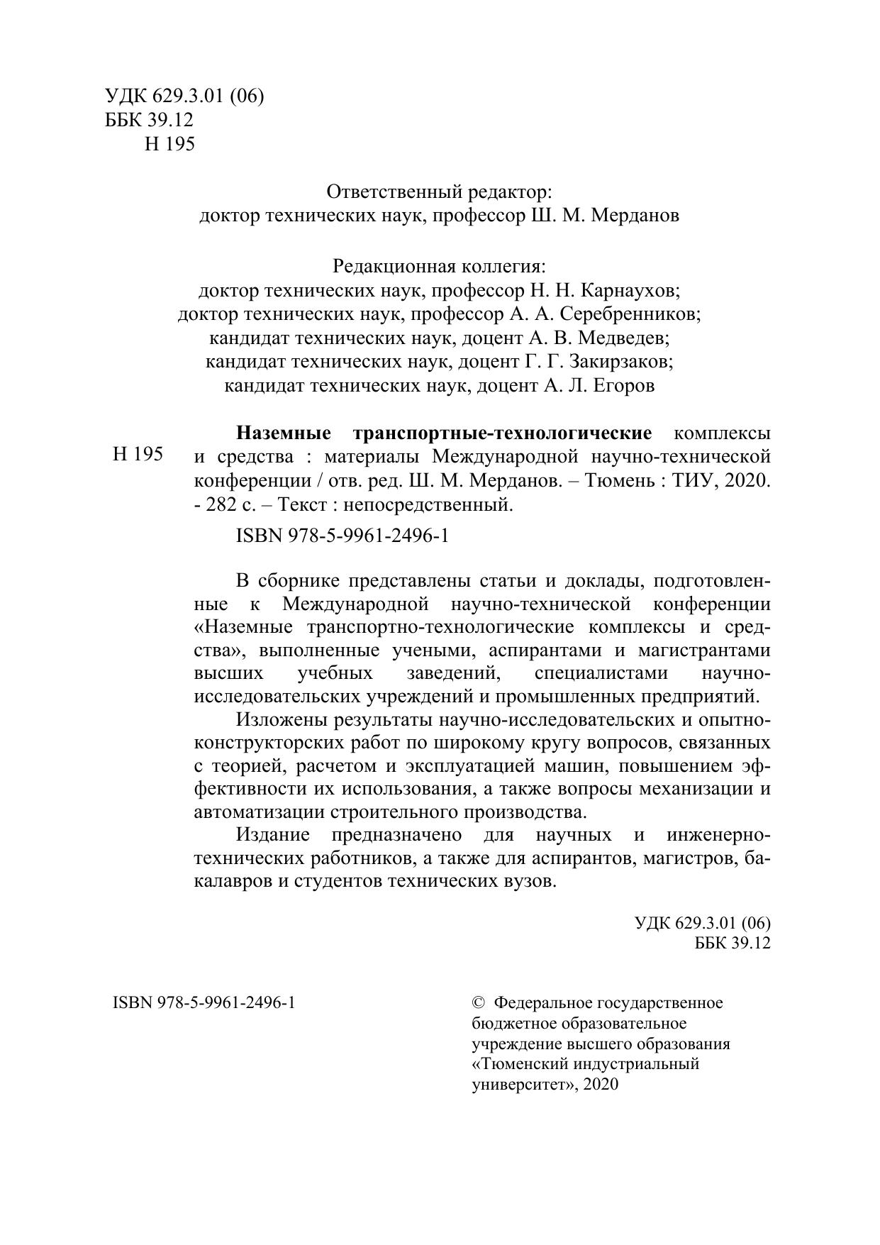 В сборнике представлены статьи и доклады, подготовленные к Международной научно-технической конференции «Наземные транспортно-технологические комплексы и средства», выполненные учеными, аспирантами и магистрантами высших учебных заведений, специалистами научноисследовательских учреждений и промышленных предприятий. Изложены результаты научно-исследовательских и опытноконструкторских работ по широкому кругу вопросов, связанных с теорией, расчетом и эксплуатацией машин, повышением эффективности их использования, а также вопросы механизации и автоматизации строительного производства. Издание предназначено для научных и инженерно-технических работников, а также для аспирантов, магистров, бакалавров и студентов технических вузов.