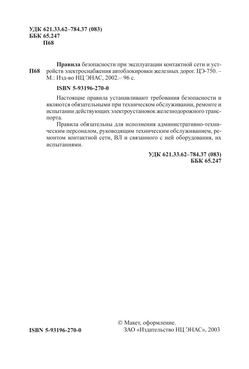Правила безопасности при эксплуатации контактной сети и устройств электроснабжения автоблокировки железных дорог. ЦЭ-750