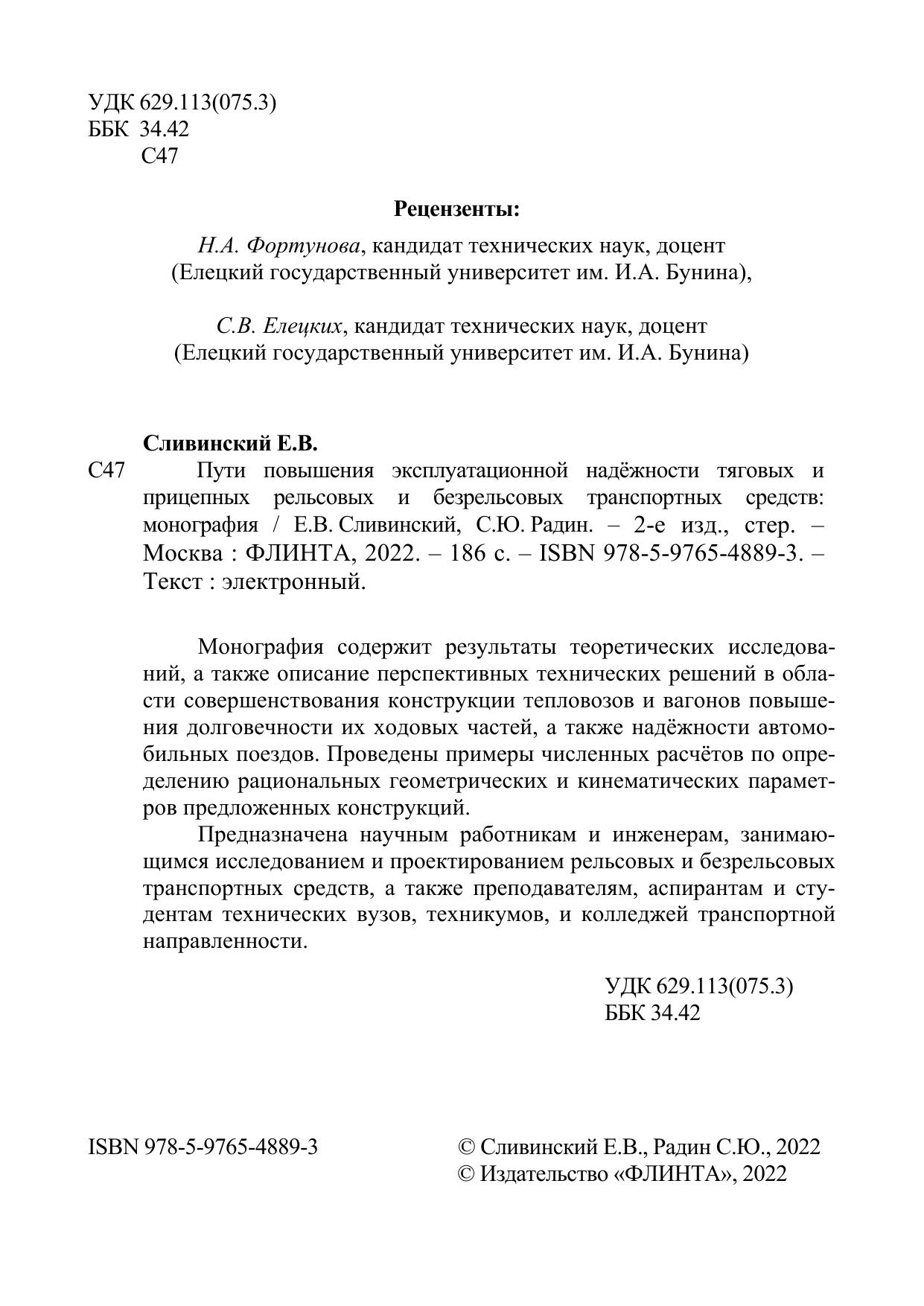 Монография содержит результаты теоретических исследований, а также описание перспективных технических решений в области совершенствования конструкции тепловозов и вагонов повышения долговечности их ходовых частей, а также надёжности автомобильных поездов. Проведены примеры численных расчётов по определению рациональных геометрических и кинематических параметров предложенных конструкций.