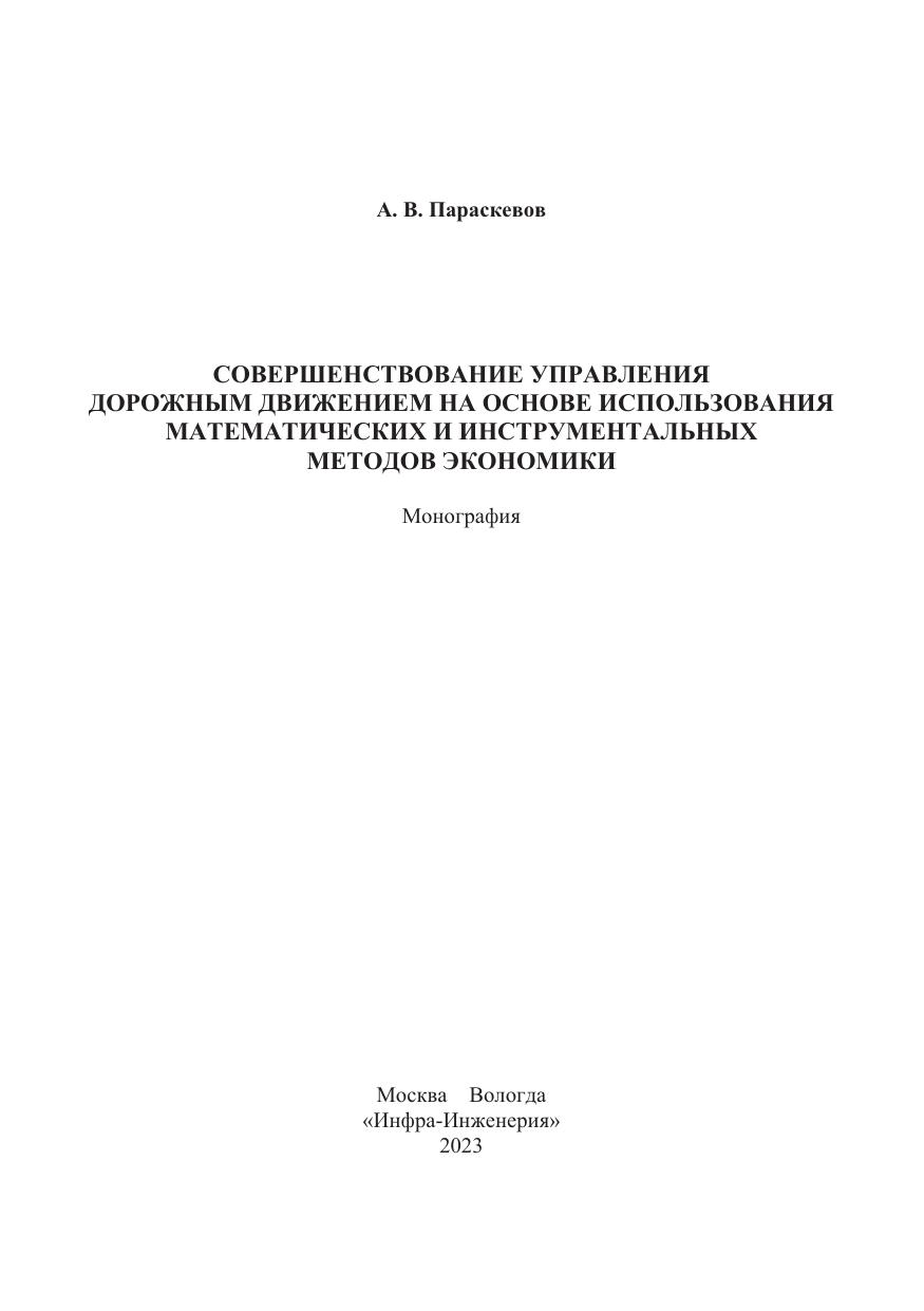Совершенствование управления дорожным движением на основе использования математических и инструментальных методов экономики