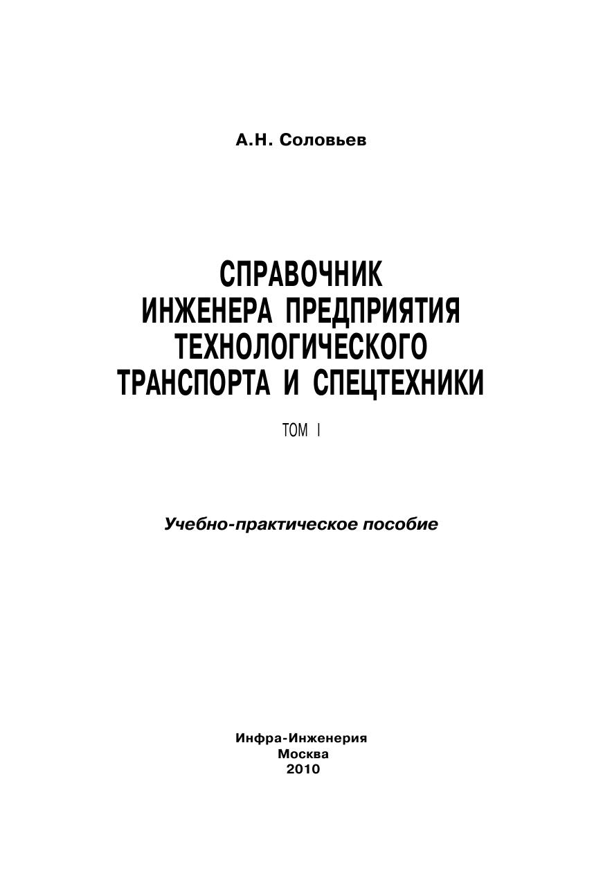 Справочник инженера предприятия технологического транспорта и спецтехники в 2-х томах. Т.1