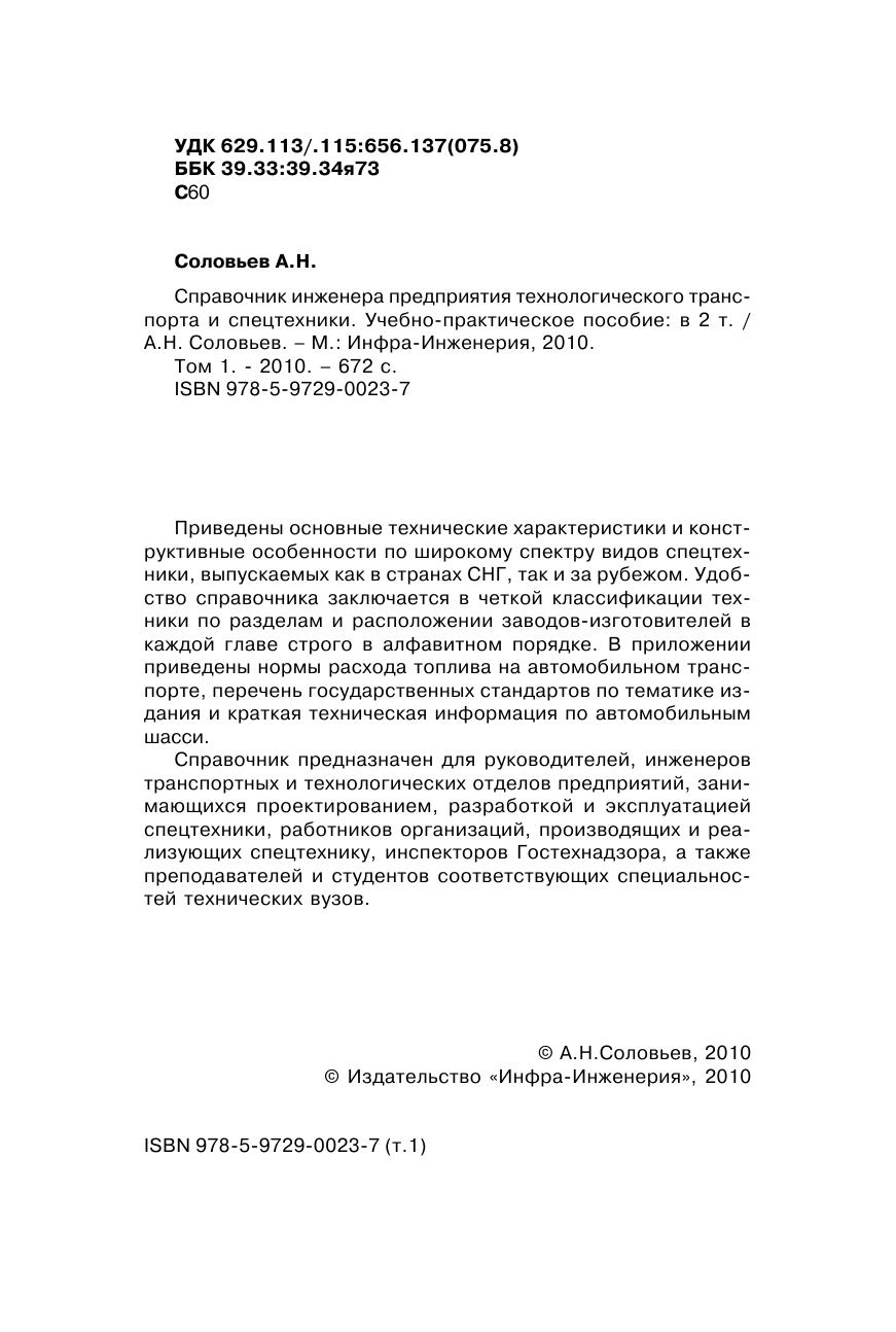 Приведены основные технические характеристики и конструктивные особенности по широкому спектру видов спецтехники, выпускаемых как в странах СНГ, так и за рубежом. Удобство справочника заключается в четкой классификации техники по разделам и расположении заводов-изготовителей в каждой главе строго в алфавитном порядке. В приложении приведены нормы расхода топлива на автомобильном транспорте, перечень государственных стандартов по тематике издания и краткая техническая информация по автомобильным шасси. Справочник предназначен для руководителей, инженеров транспортных и технологических отделов предприятий, занимающихся проектированием, разработкой и эксплуатацией спецтехники, работников организаций, производящих и реализующих спецтехнику, инспекторов Гостехнадзора, а также преподавателей и студентов соответствующих специальностей технических вузов.