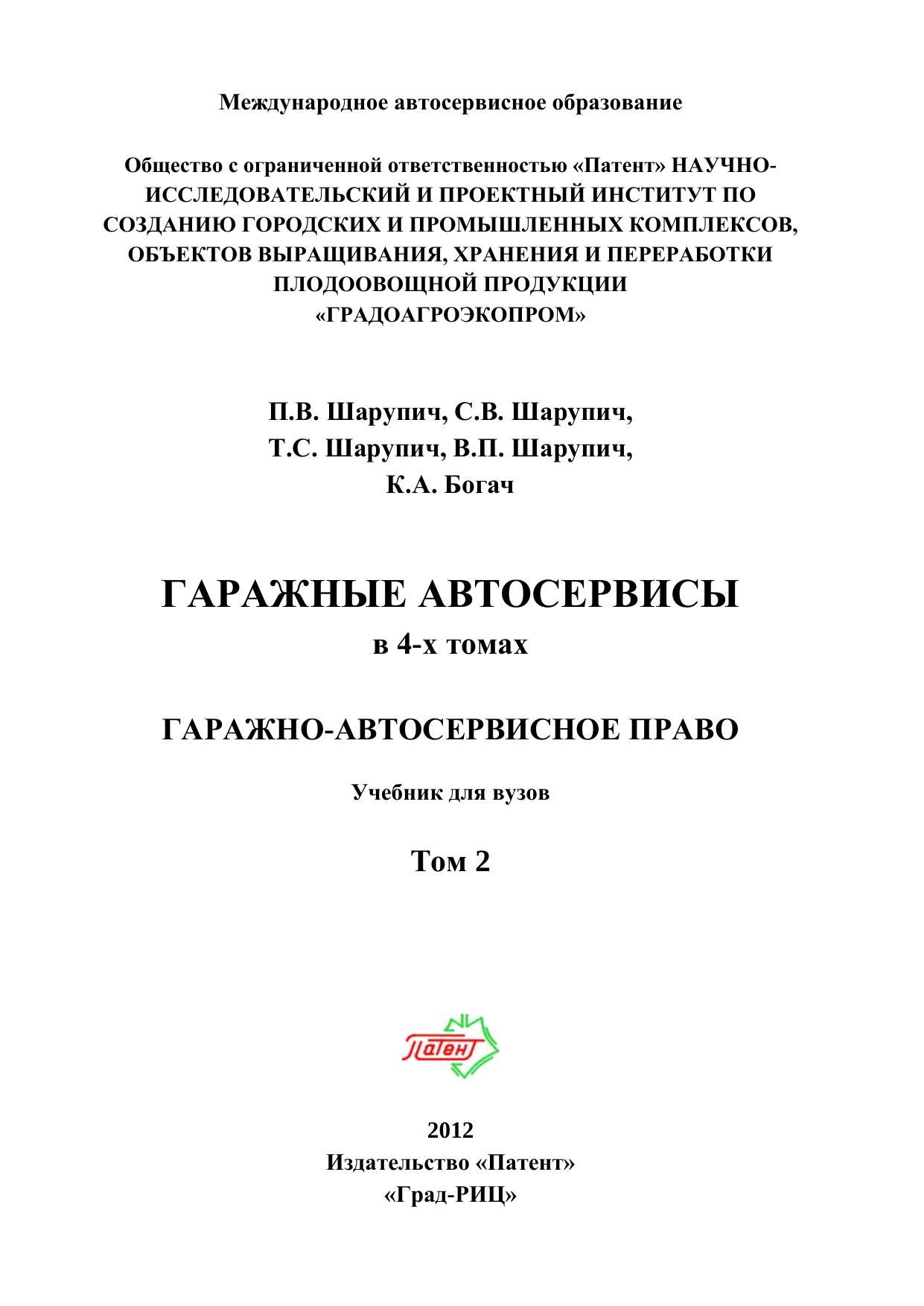 Гаражные автосервисы. В 4-х томах. Т. 2. Гаражно-автосервисное право