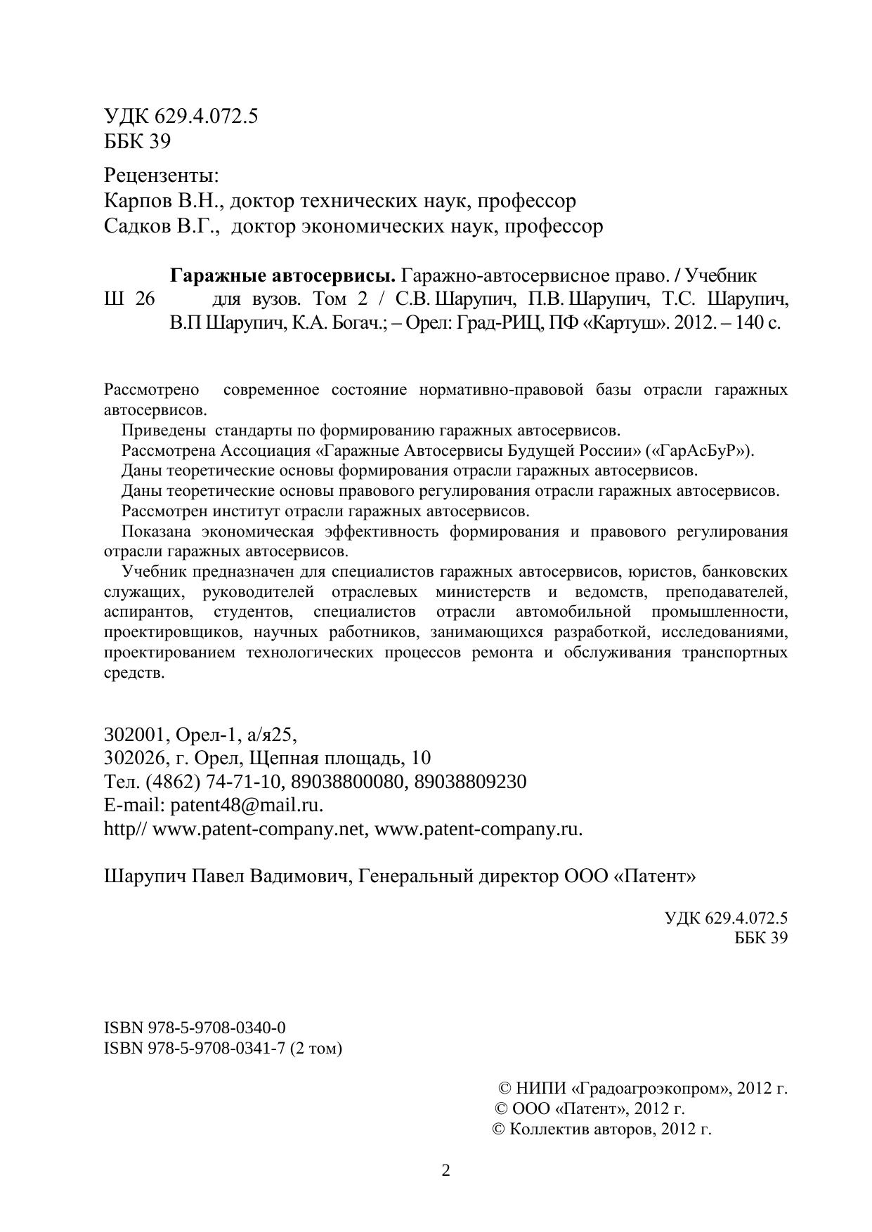 Учебник предназначен для специалистов гаражных автосервисов, юристов, банковских служащих, руководителей отраслевых министерств и ведомств, преподавателей, аспирантов, студентов, специалистов отрасли автомобильной промышленности, проектировщиков, научных работников, занимающихся разработкой, исследованиями, проектированием технологических процессов ремонта и обслуживания транспортных средств.